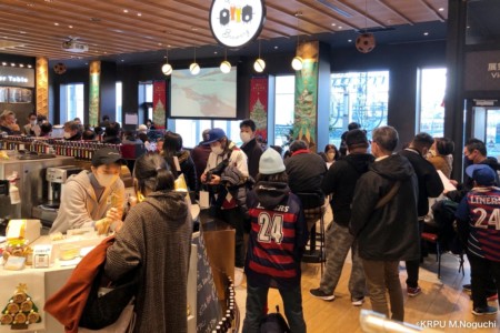 12月18日(日)、ジャパンラグビーリーグワンの開幕戦に合わせて、花園近鉄ライナーズ対NECグリーンロケッツ東葛のパブリックビューイングが西大寺Time’s Placeにて行われました。
