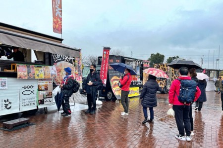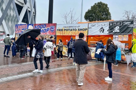噴水広場にキッチンカーおよび出店が登場し、ライナーズコラボメニューのほか、さまざまなグルメをお楽しみいただきました。