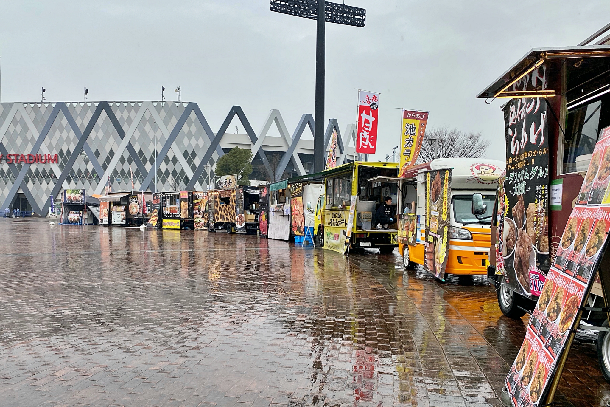 噴水広場にキッチンカーおよび出店が登場し、ライナーズコラボメニューのほか、さまざまなグルメをお楽しみいただきました。