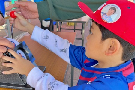 毎回好評の缶バッチ作りは、ラグビーパークに参加した梅村柊羽、ヴィンセント・セフォ、金澤春樹の3選手も自ら作成。