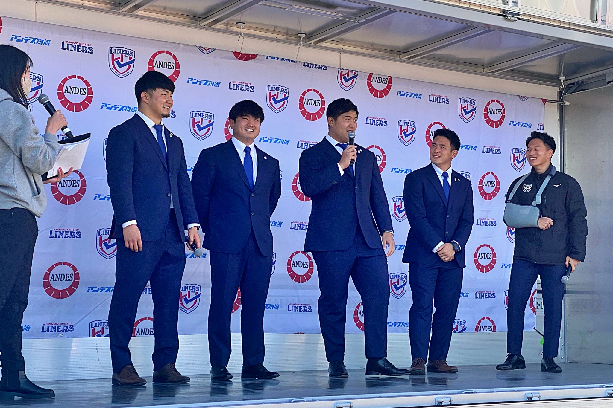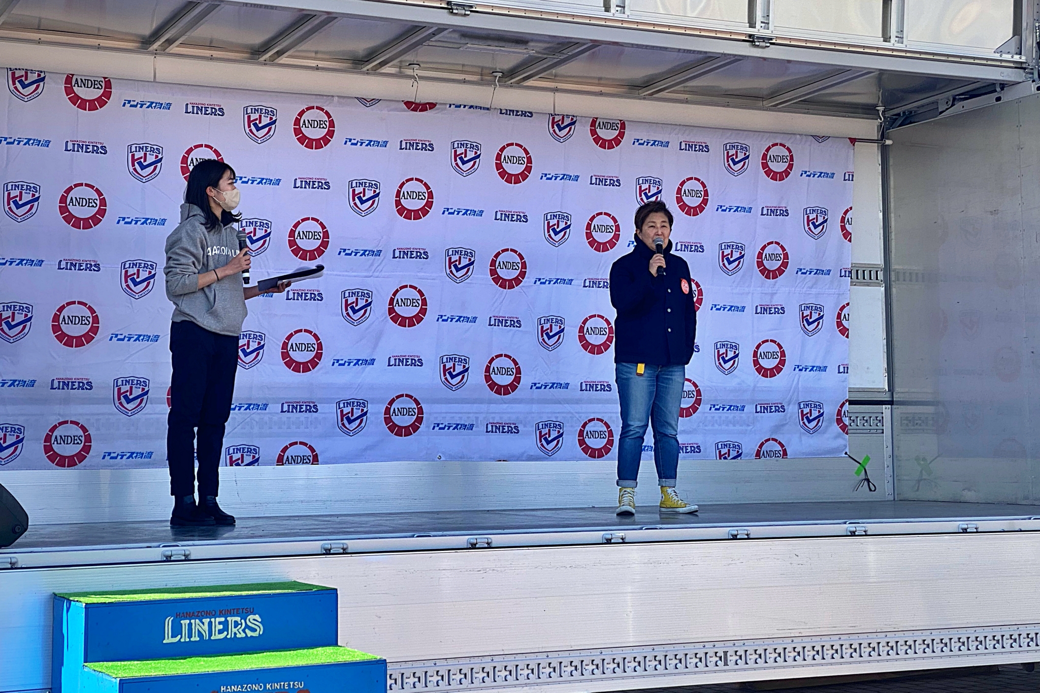 2月5日(日)、NTTジャパンラグビー リーグワン2022-23 Div.1第7節 静岡ブルーレヴズ戦に合わせ、東大阪市花園ラグビー場前の噴水広場にてライナーズ主催のイベント「花園ハッピーパーク」を開催しました。