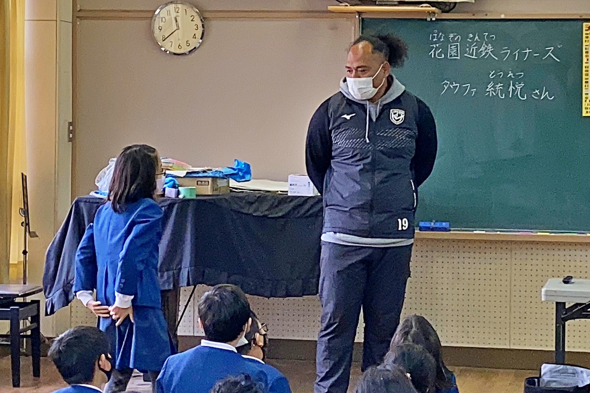 1月20日(金)、「花園近鉄ライナーズスクラム事業」の一環で、東大阪市立孔舎衙(くさか)小学校の4年生に向けてラグビー体験および講話を実施しました。