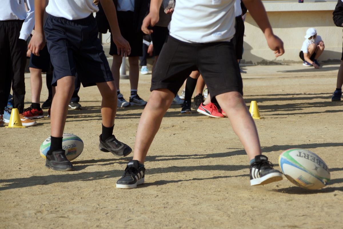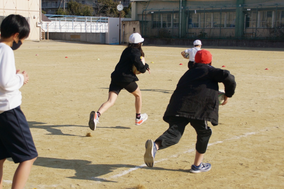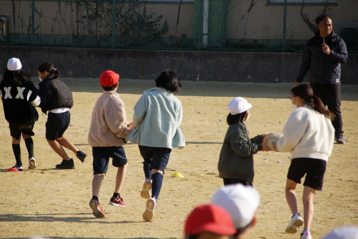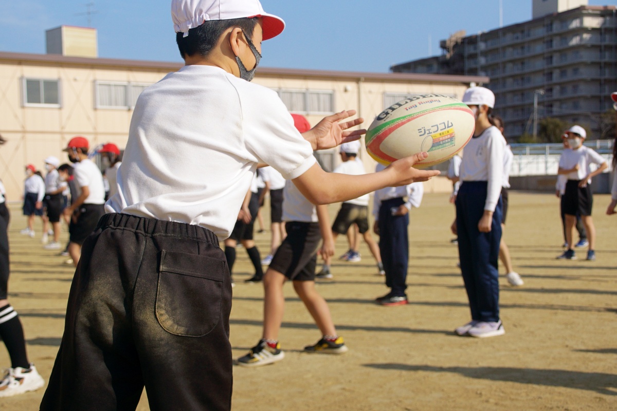 2月9日(木)、和泉市立北池田小学校にて、タウファ統悦普及担当がラグビー体験を実施しました。
