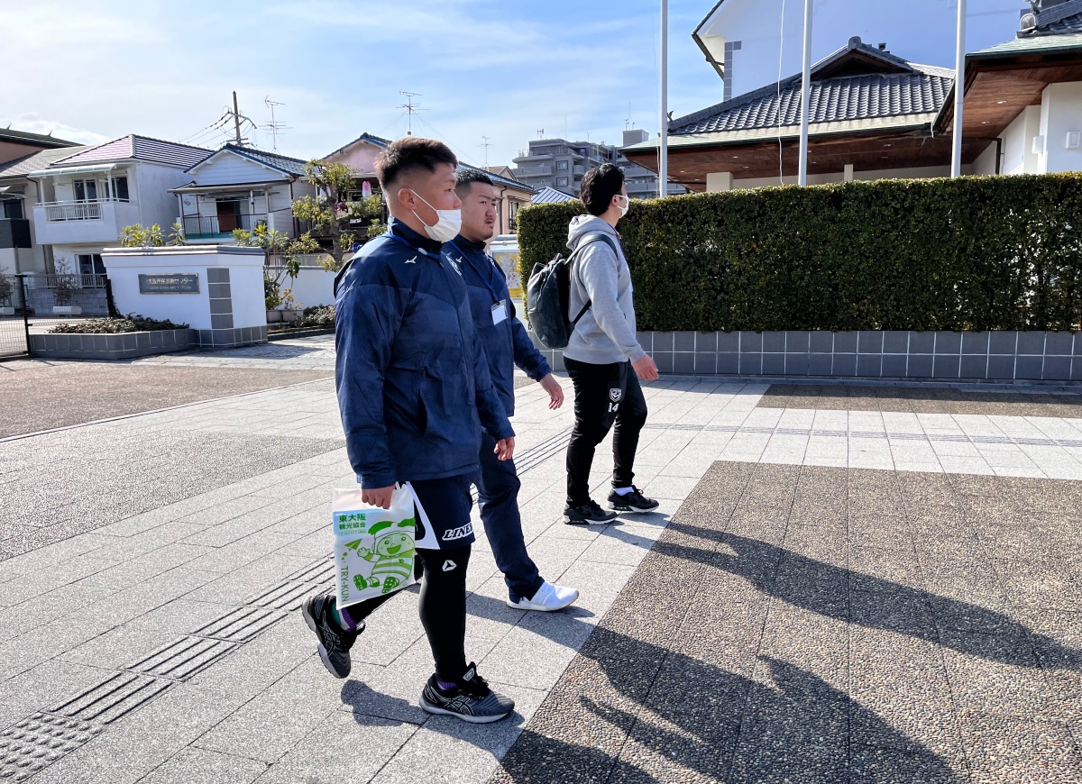 2人はスタート地点の東大阪市花園ラグビー場から、恩智川・ジョージベーカリー・セカイホテル・布施戎神社・モモヤ・三ノ瀬公園・二輪車工房イシダ・樟徳館・お好み焼 てらまえなど回り、ゴールのラグビー場まで戻ってきました。