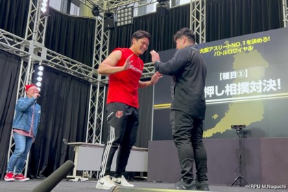 アスリート同士の運動能力対決では垂直跳びやバーチャルモグラ叩き、手押し相撲対決に挑戦しましたが、優勝はなりませんでした。