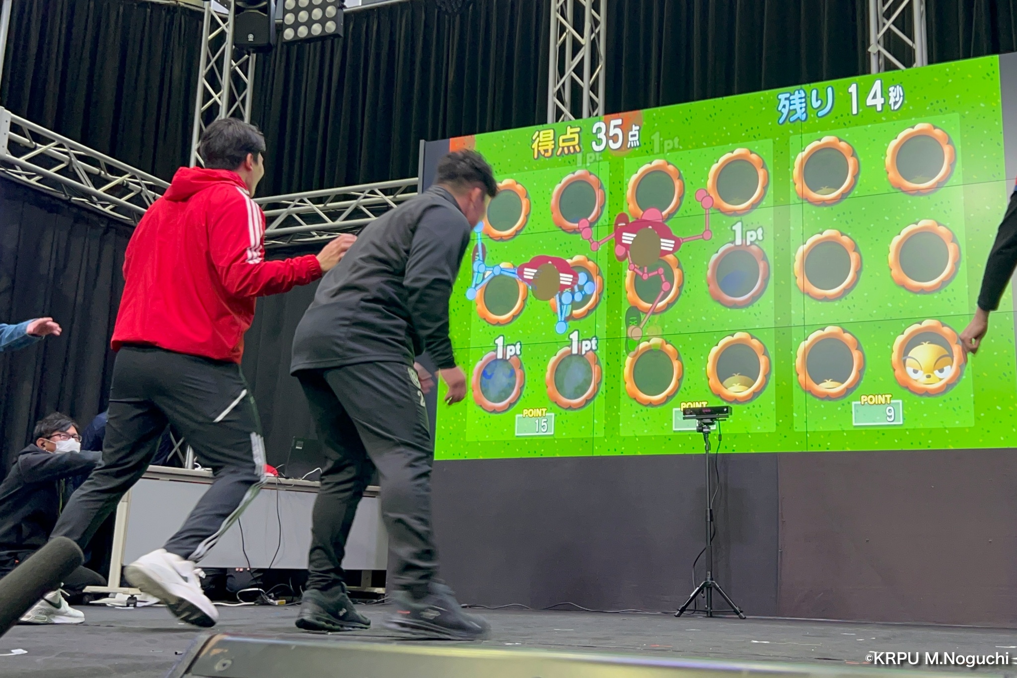 アスリート同士の運動能力対決では垂直跳びやバーチャルモグラ叩き、手押し相撲対決に挑戦しましたが、優勝はなりませんでした。