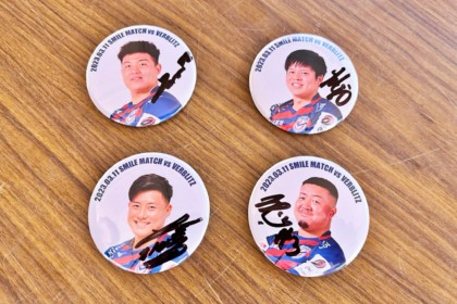 毎回好評の缶バッチ作りは、基本的にはその日の試合に出場する23選手の缶バッジをお作りいただけます。