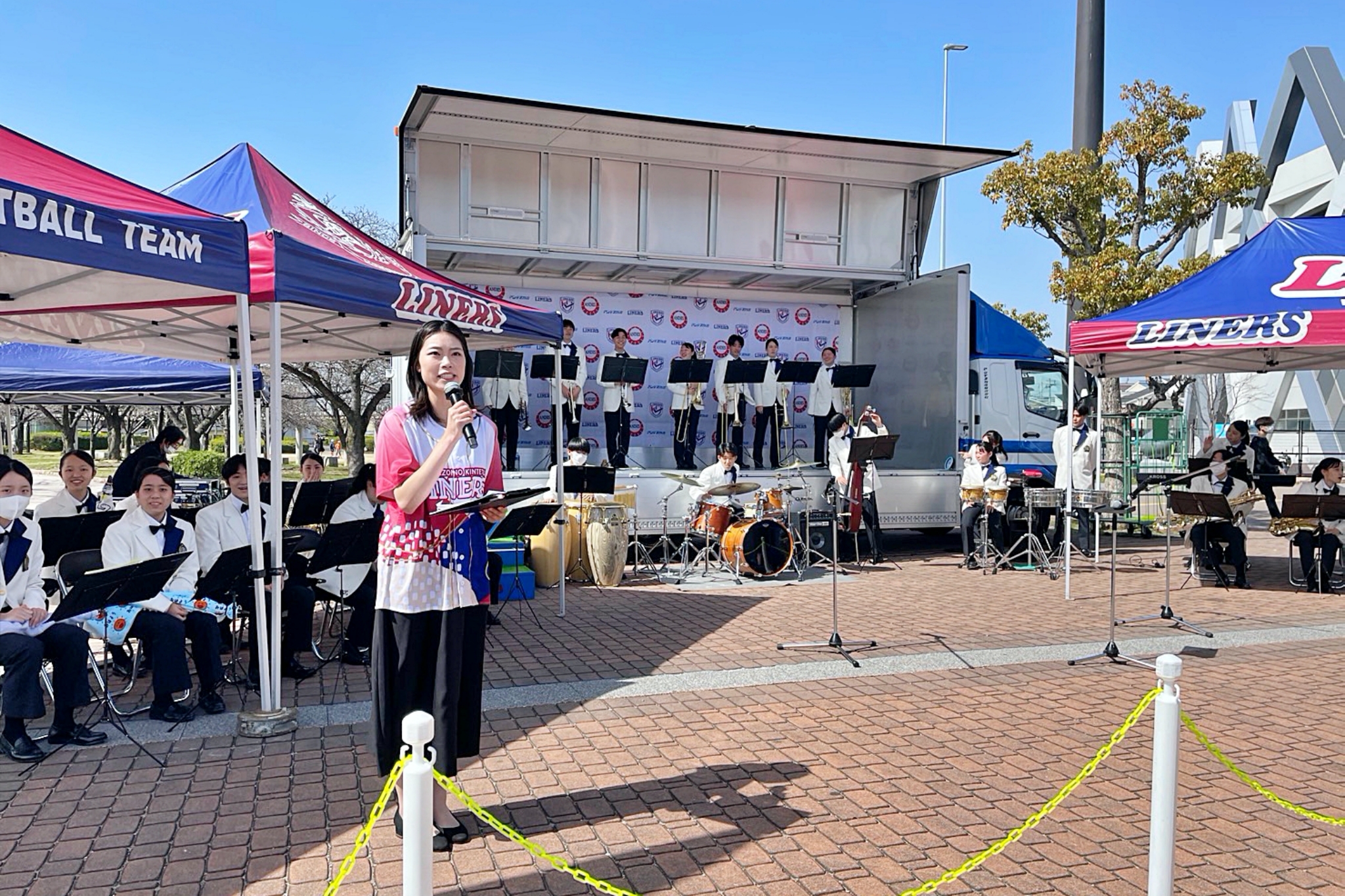 3月11日(土)、NTTジャパンラグビー リーグワン2022-23 Div.1第11節 トヨタヴェルブリッツ戦に合わせ、東大阪市花園ラグビー場前の噴水広場にてライナーズ主催のイベント「花園ハッピーパーク」を開催しました。