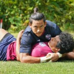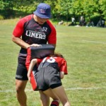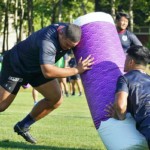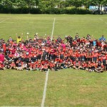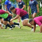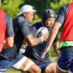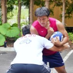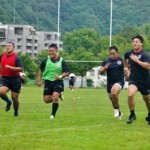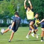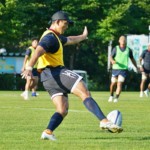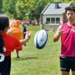 4日目の8/26(土)はラグビークリニックを実施。グループに分かれて、北海道バーバリアンズジュニアのみなさんを中心に、北海道でラグビーをしている小中学生へラグビー指導を行いました。