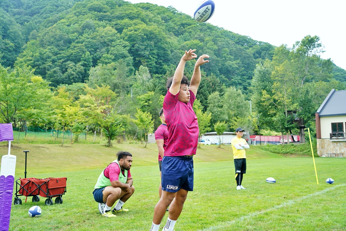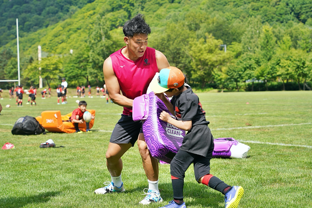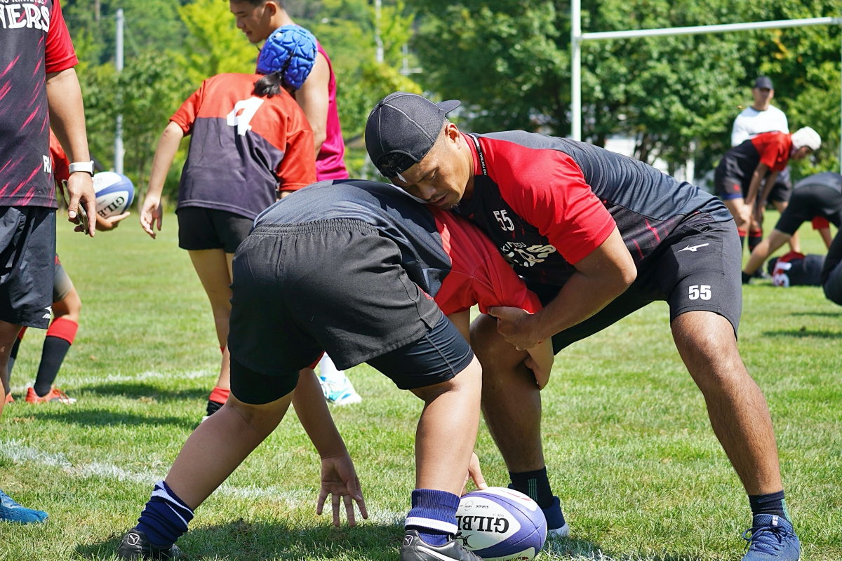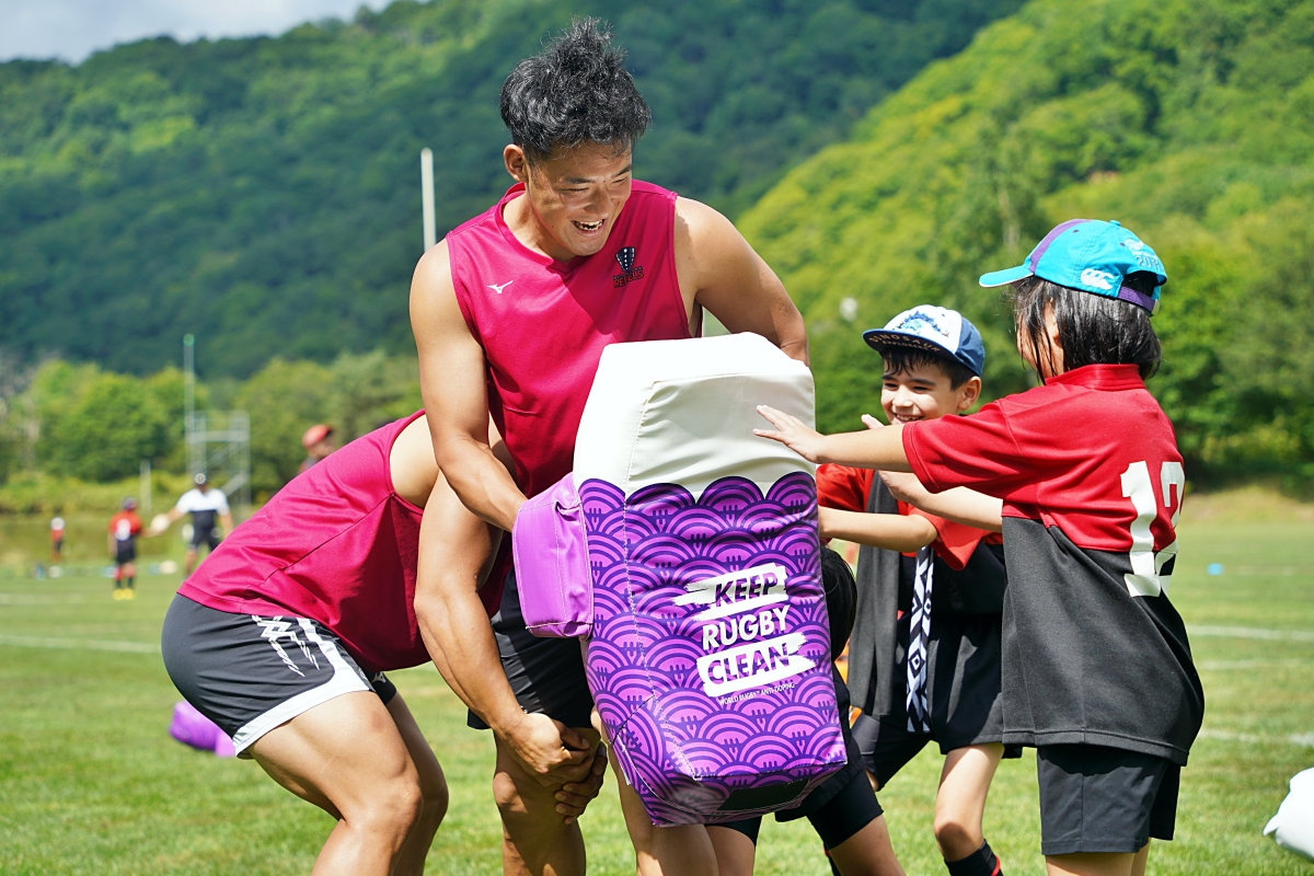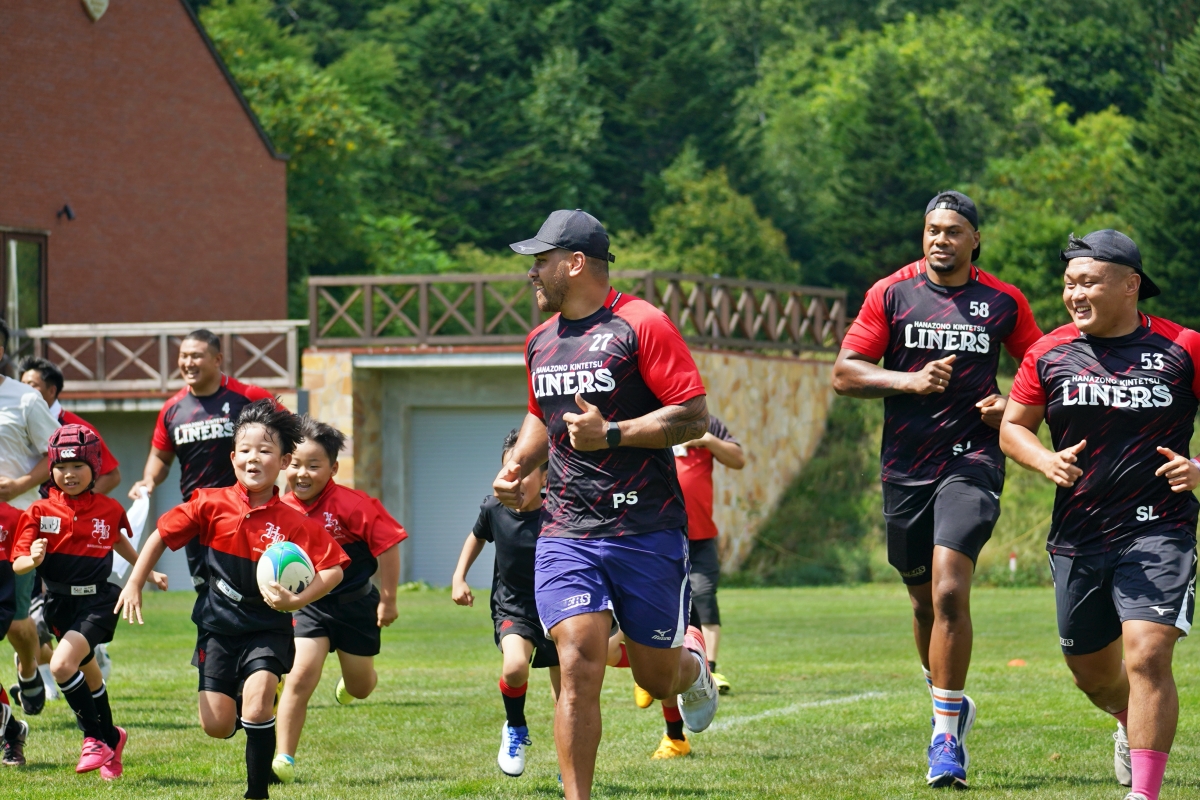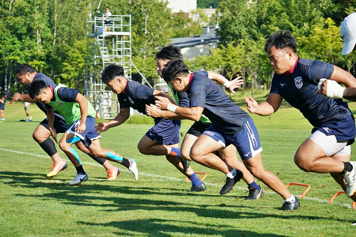4日目の8/26(土)はラグビークリニックを実施。グループに分かれて、北海道バーバリアンズジュニアのみなさんを中心に、北海道でラグビーをしている小中学生へラグビー指導を行いました。