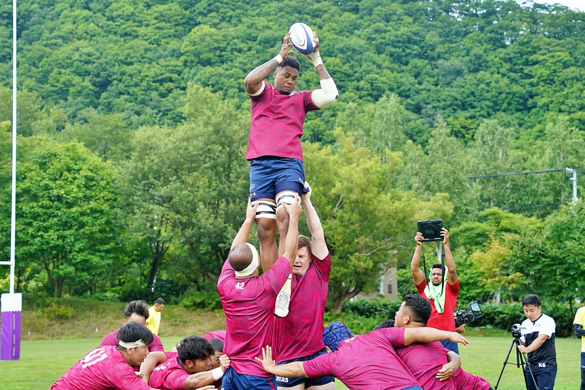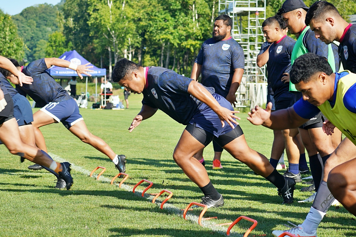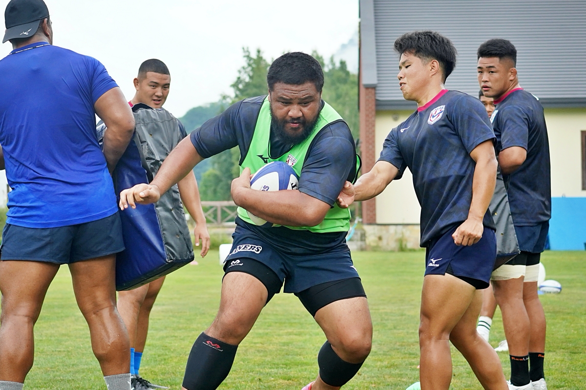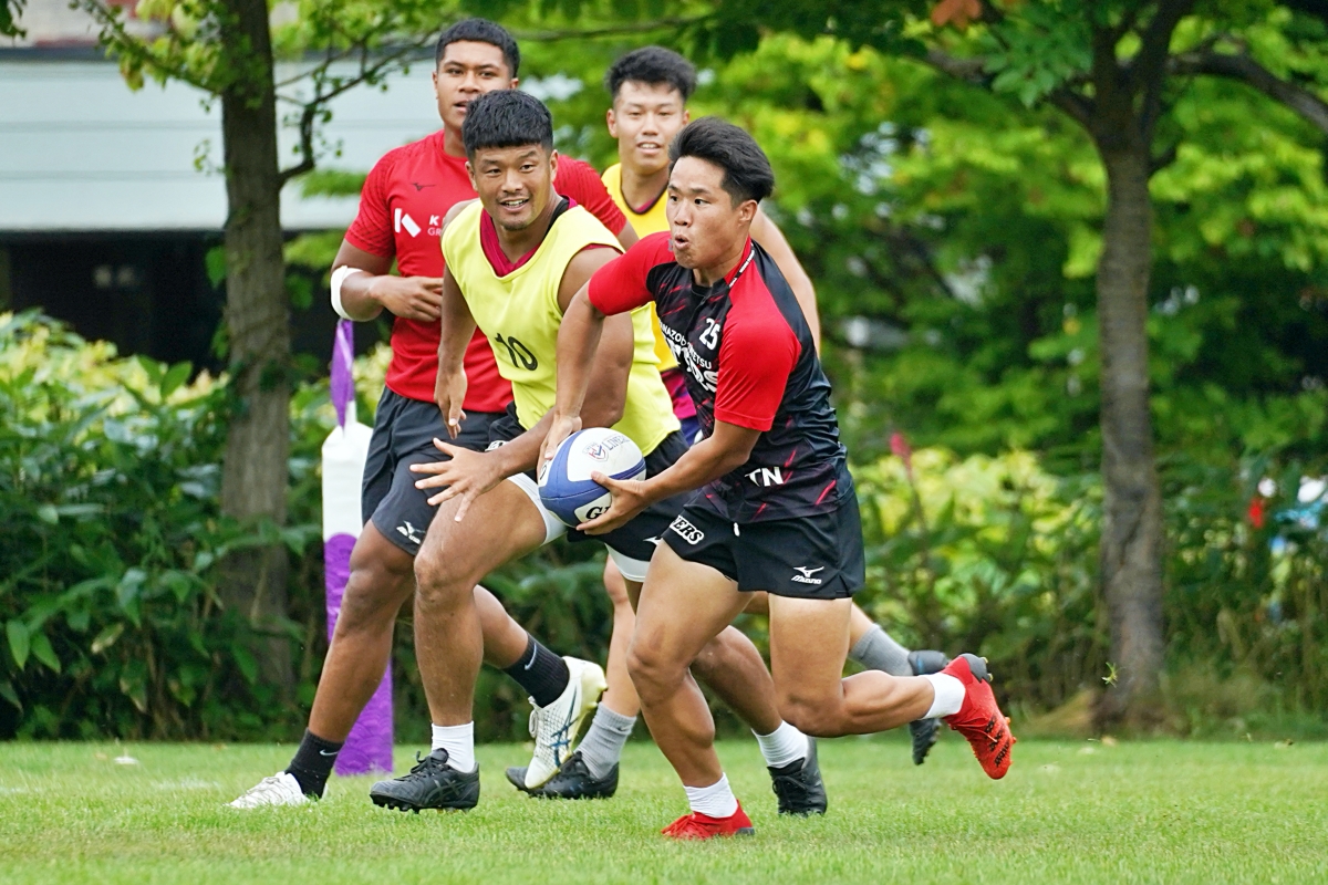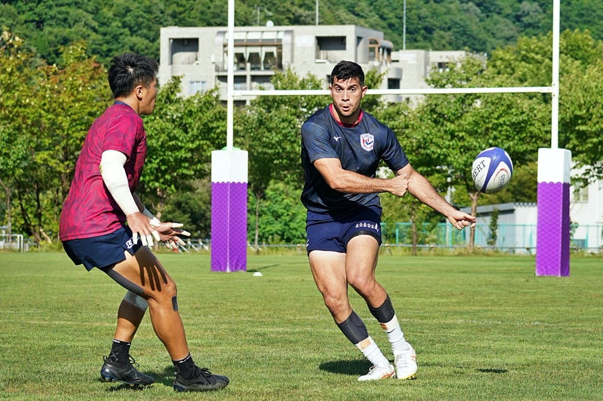 4日目の8/26(土)はラグビークリニックを実施。グループに分かれて、北海道バーバリアンズジュニアのみなさんを中心に、北海道でラグビーをしている小中学生へラグビー指導を行いました。