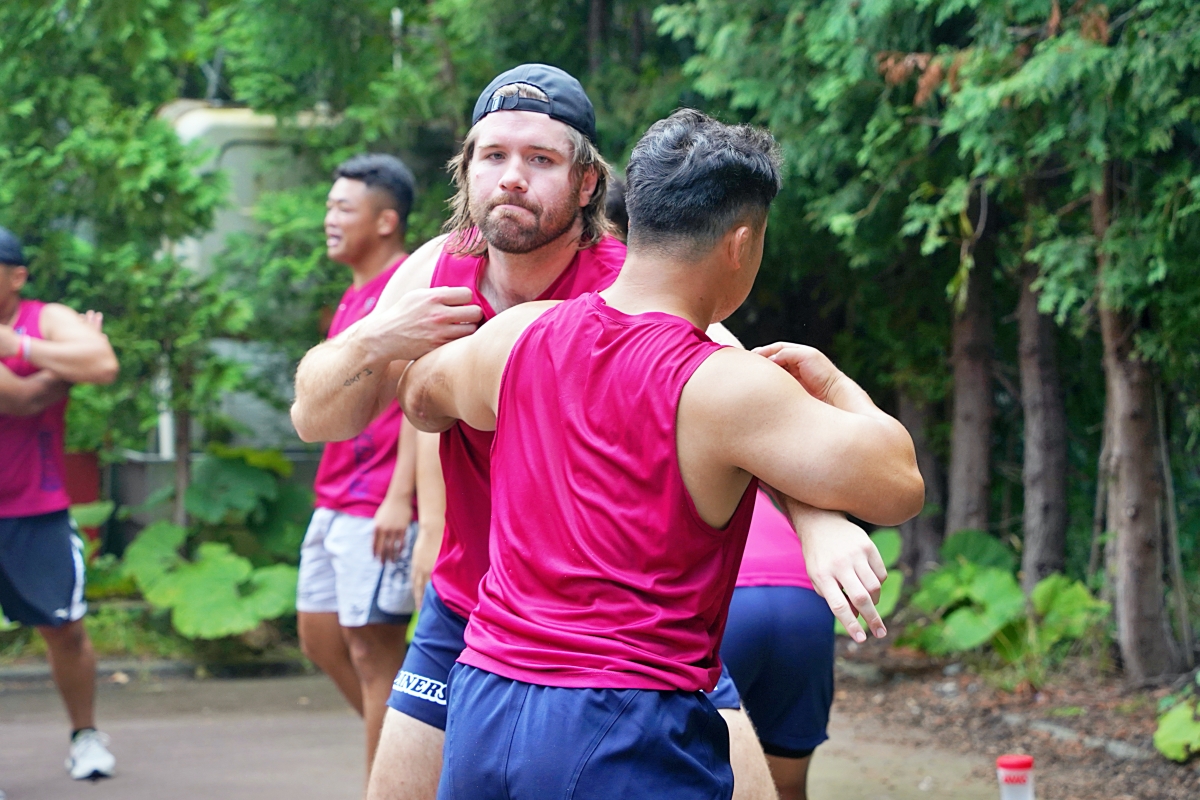 8/23は移動日で、宿舎である「倶楽部錦渓」に到着後はチームビルディングを実施。2日目から練習を開始し、早朝ジムトレーニングやグラウンドで汗を流しました。