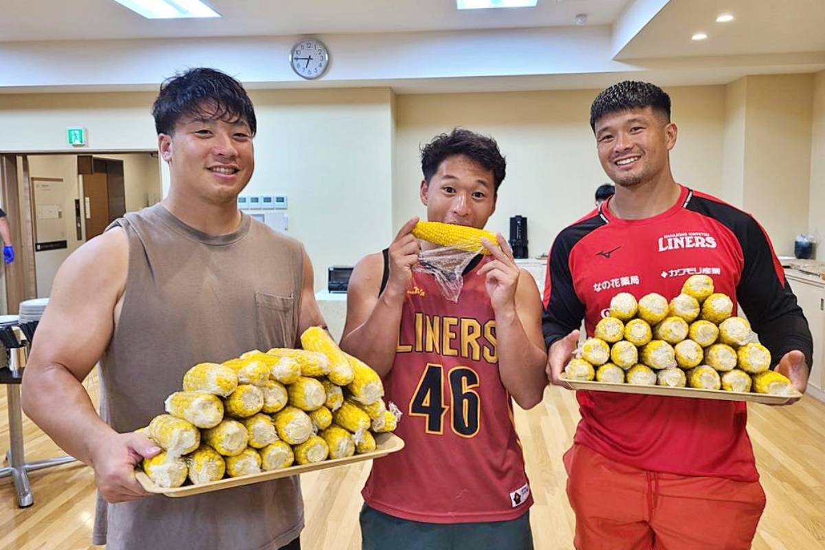 また合宿中に、トップパートナーの「なの花西日本」様より、とうもろこしの差し入れもいただきました。