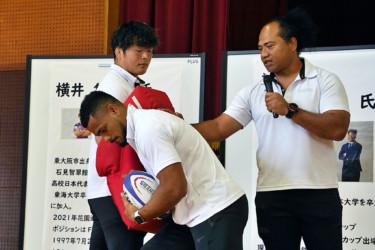 参加メンバー:タウファ統悦普及担当 、横井隼選手、ツポウ テビタ選手