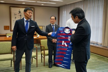 10月26日(木)、現在ライナーズが合宿でお世話になっている大分県大分市の足立信也市長へ表敬訪問し、合宿開始のあいさつをしました。