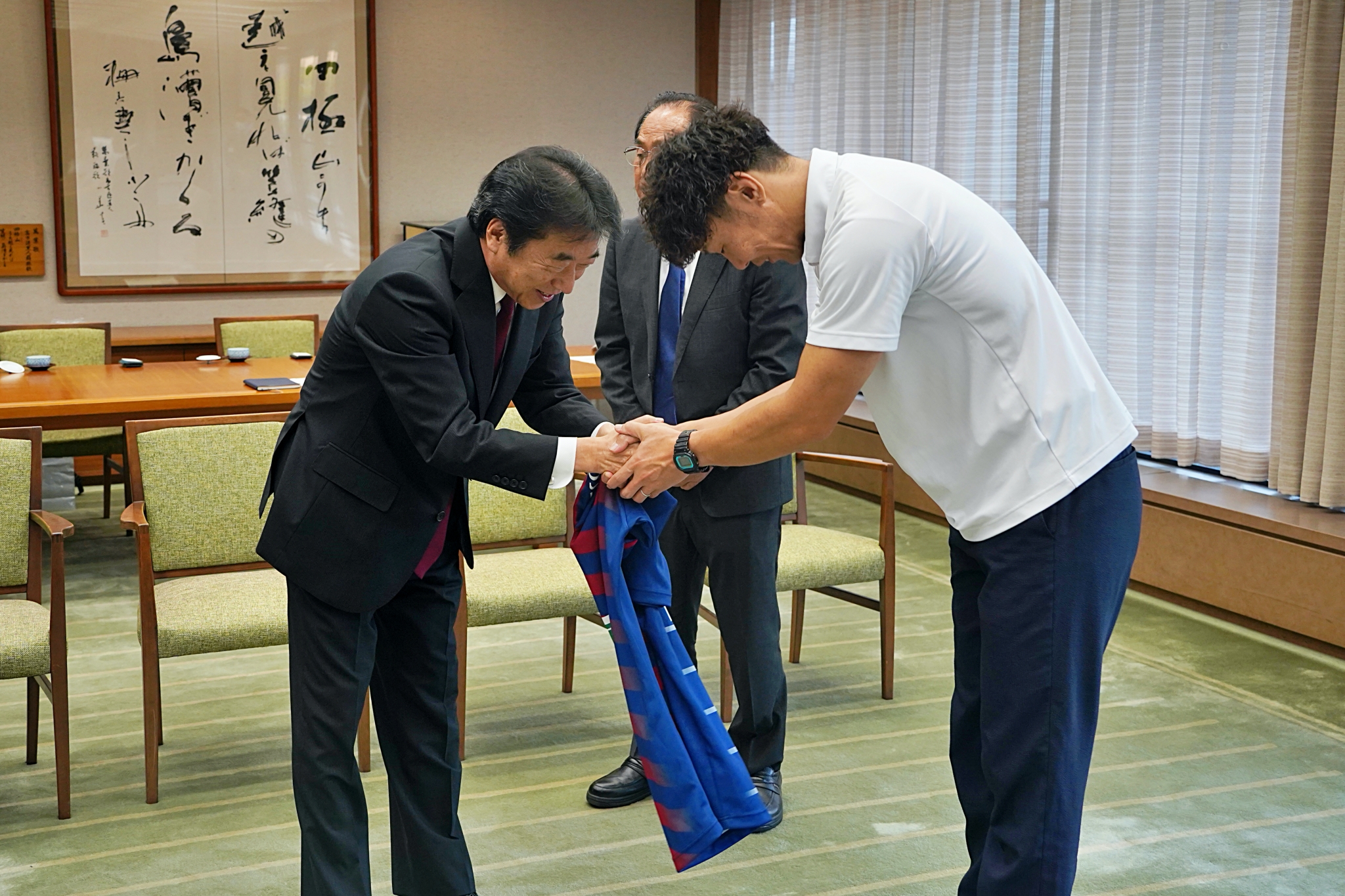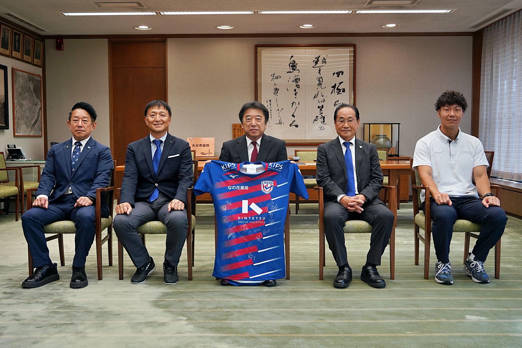10月26日(木)、現在ライナーズが合宿でお世話になっている大分県大分市の足立信也市長へ表敬訪問し、合宿開始のあいさつをしました。