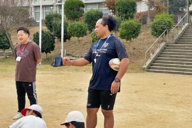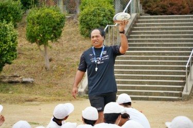 2023年11月6日(月)、堺市立新檜尾台小学校にて「トップアスリート小学校ふれあい事業」を実施。タウファ統悦普及担当が6年生に職業講話とラグビー体験を行いました。