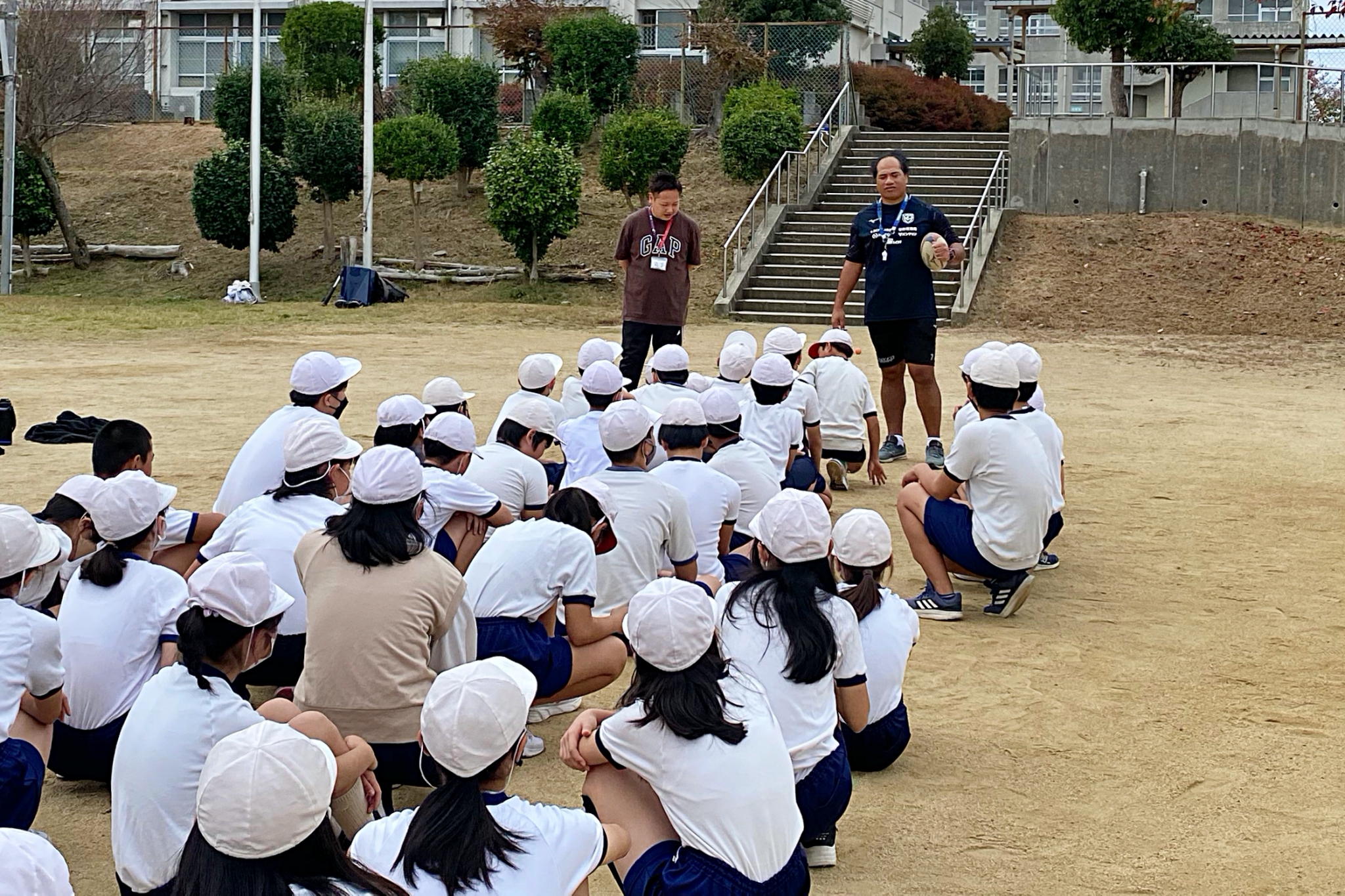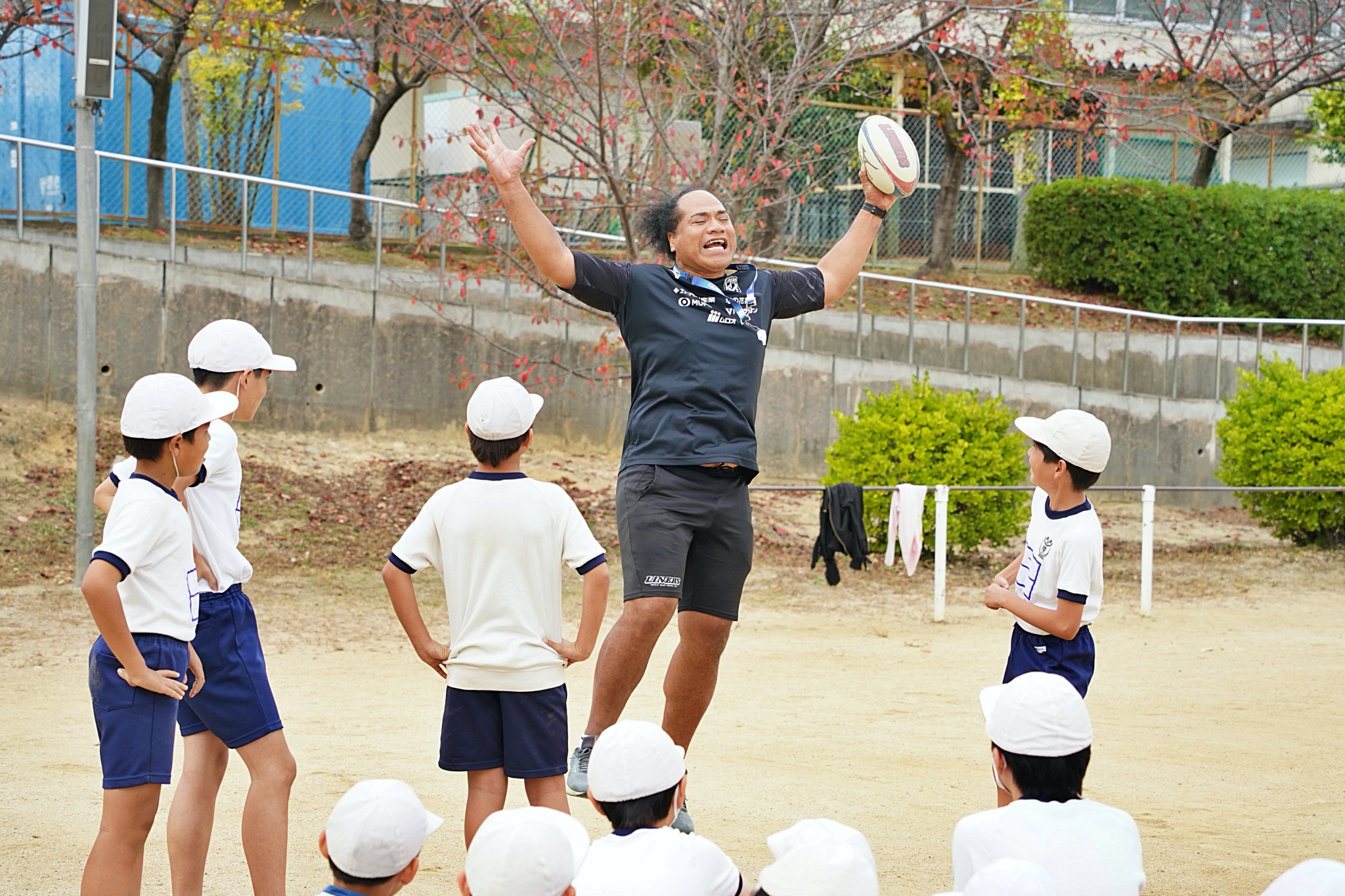 2023年11月6日(月)、堺市立新檜尾台小学校にて「トップアスリート小学校ふれあい事業」を実施。タウファ統悦普及担当が6年生に職業講話とラグビー体験を行いました。