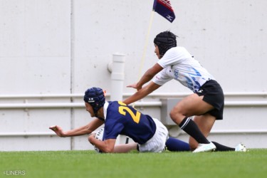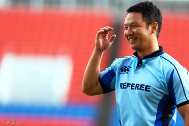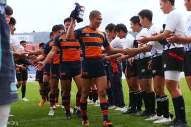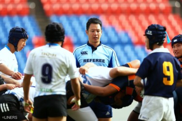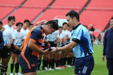レフリーには元ライナーズ選手の南藤辰馬さんを招致。自身も慣れ親しんだ花園のグラウンドで笛を吹いていただきました。