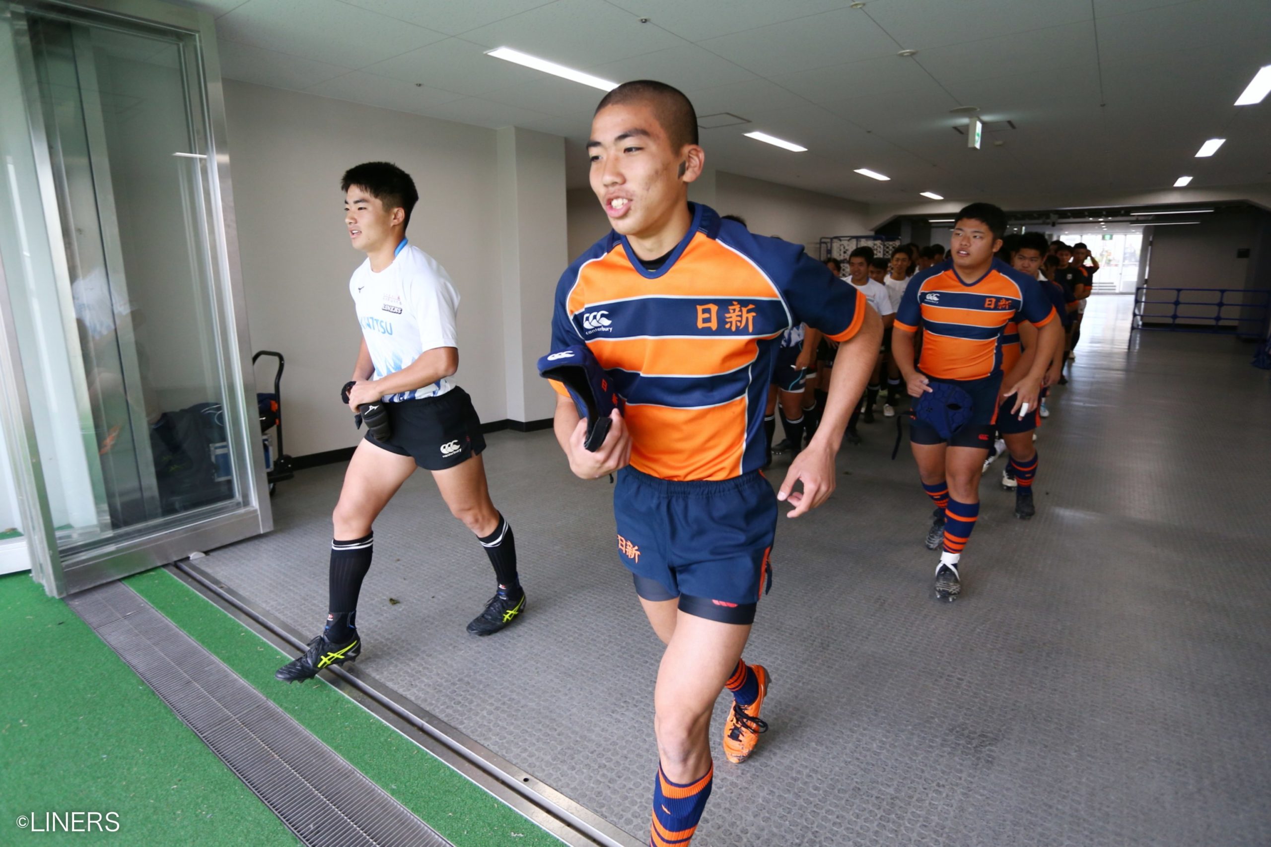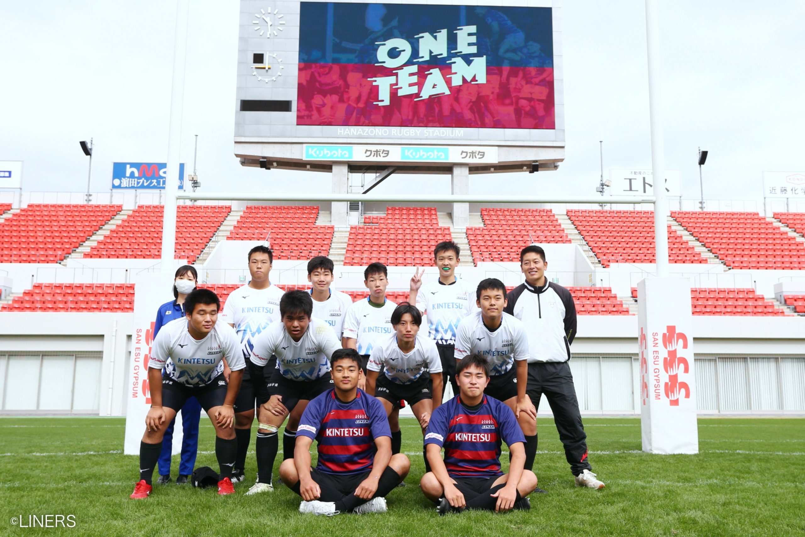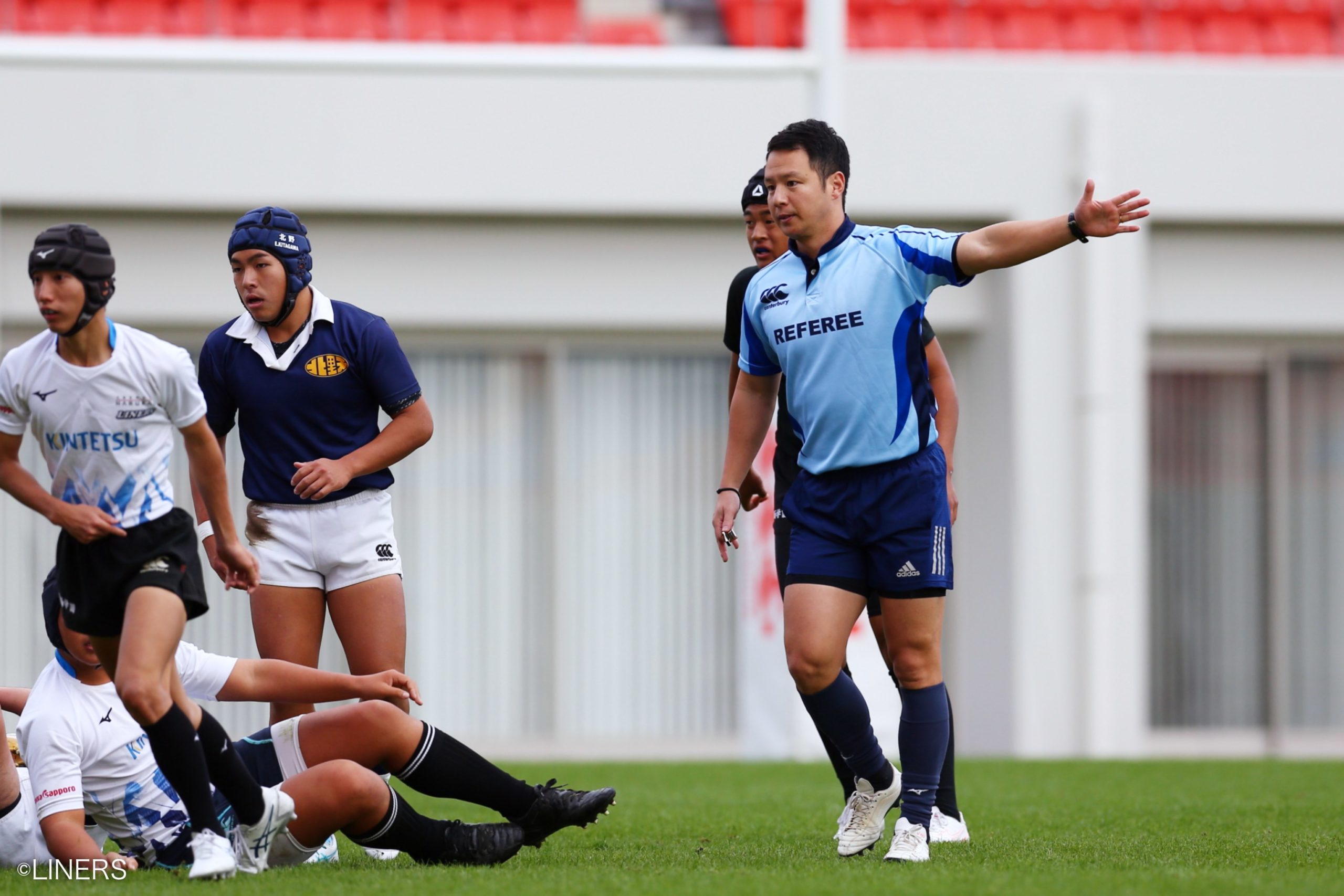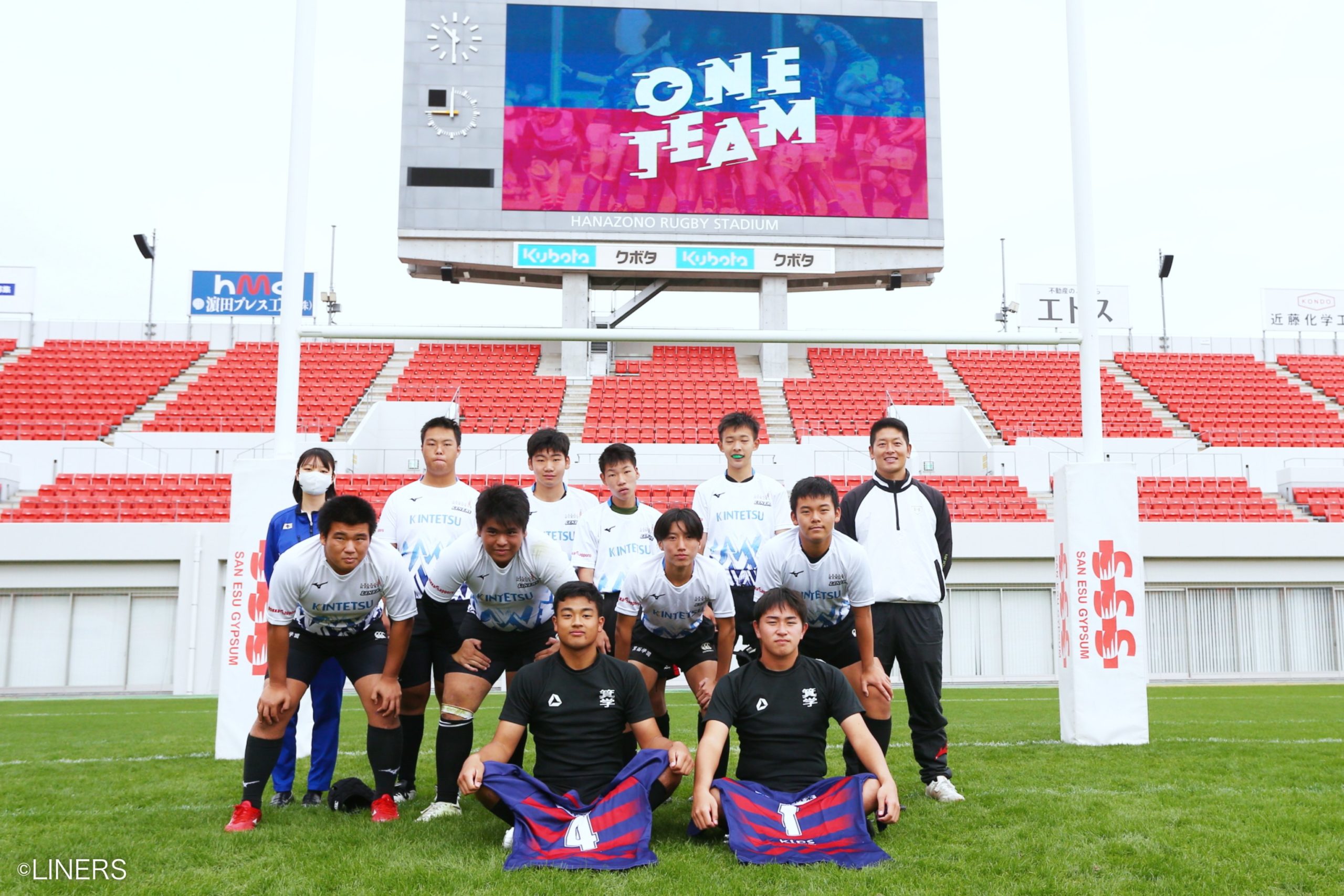 レフリーには元ライナーズ選手の南藤辰馬さんを招致。自身も慣れ親しんだ花園のグラウンドで笛を吹いていただきました。