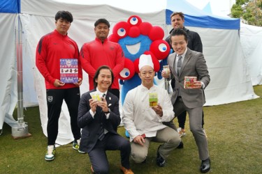 佐々木駿、梅村柊羽、ジェド・ブラウンの3選手が参加。大阪産(もん)に関するトークショーや大阪産(もん)の食レポを行い、会場を盛り上げました。