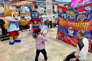 試合後にはじゃんけん大会を実施。勝者にはホスト開幕戦のチケットやライナーズグッズをプレゼントしました。ららぽーと堺様、大阪スポーツコミッション様、ご参加いただいたみなさま、ありがとうございました。