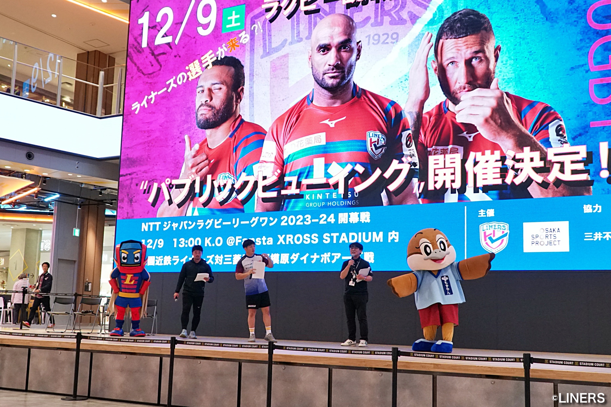 2023年12月9日(土)、NTTジャパンラグビーリーグワン2023-24 開幕戦 vs三菱重工相模原ダイナボアーズに合わせ、「大阪スポーツコミッション (OSAKA SPORTS PROJECT)」との連携企画として、ららぽーと堺にてパブリックビューイングを実施しました。