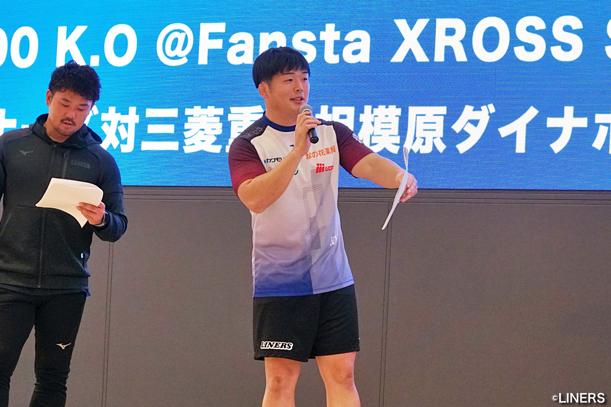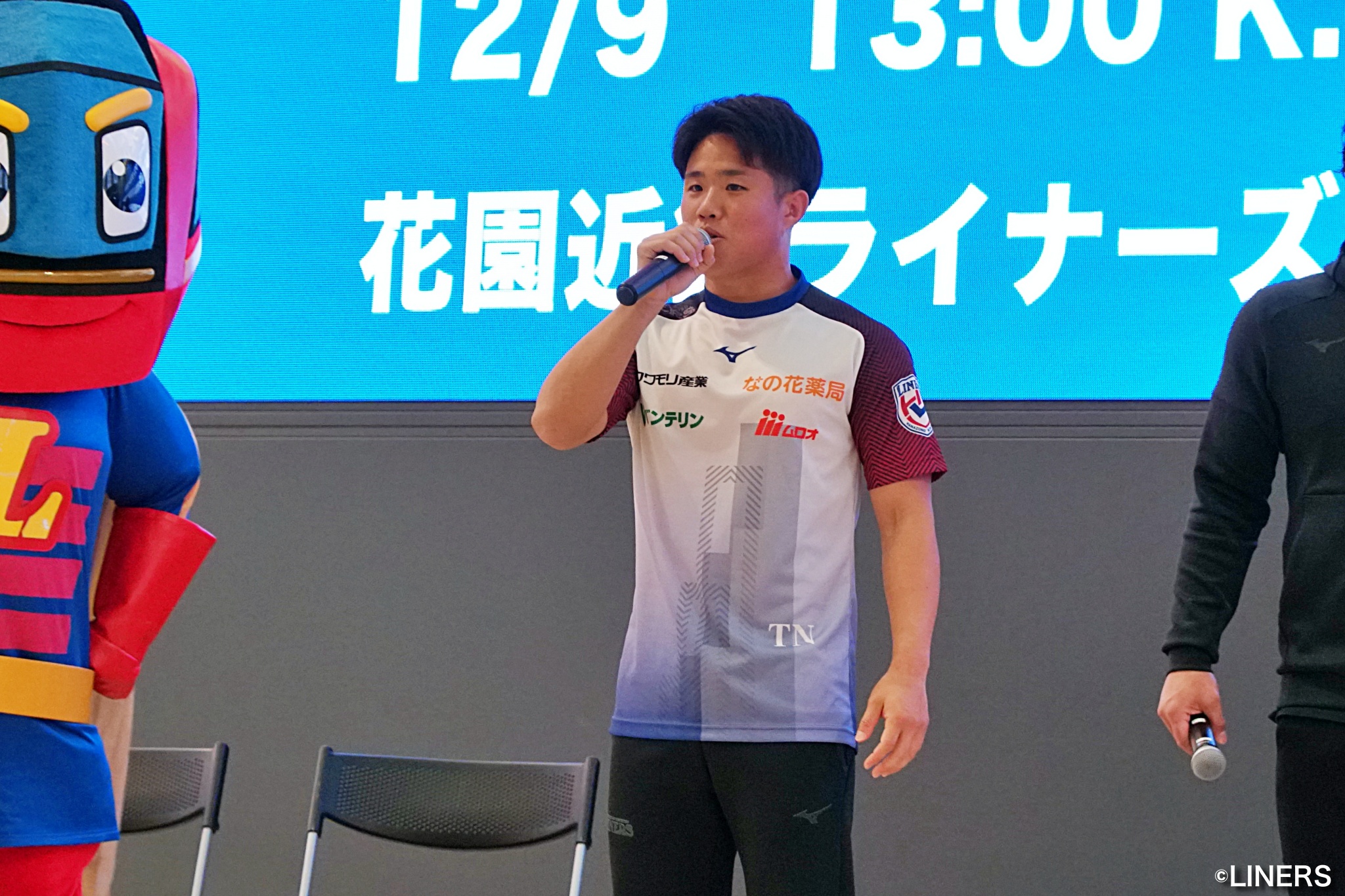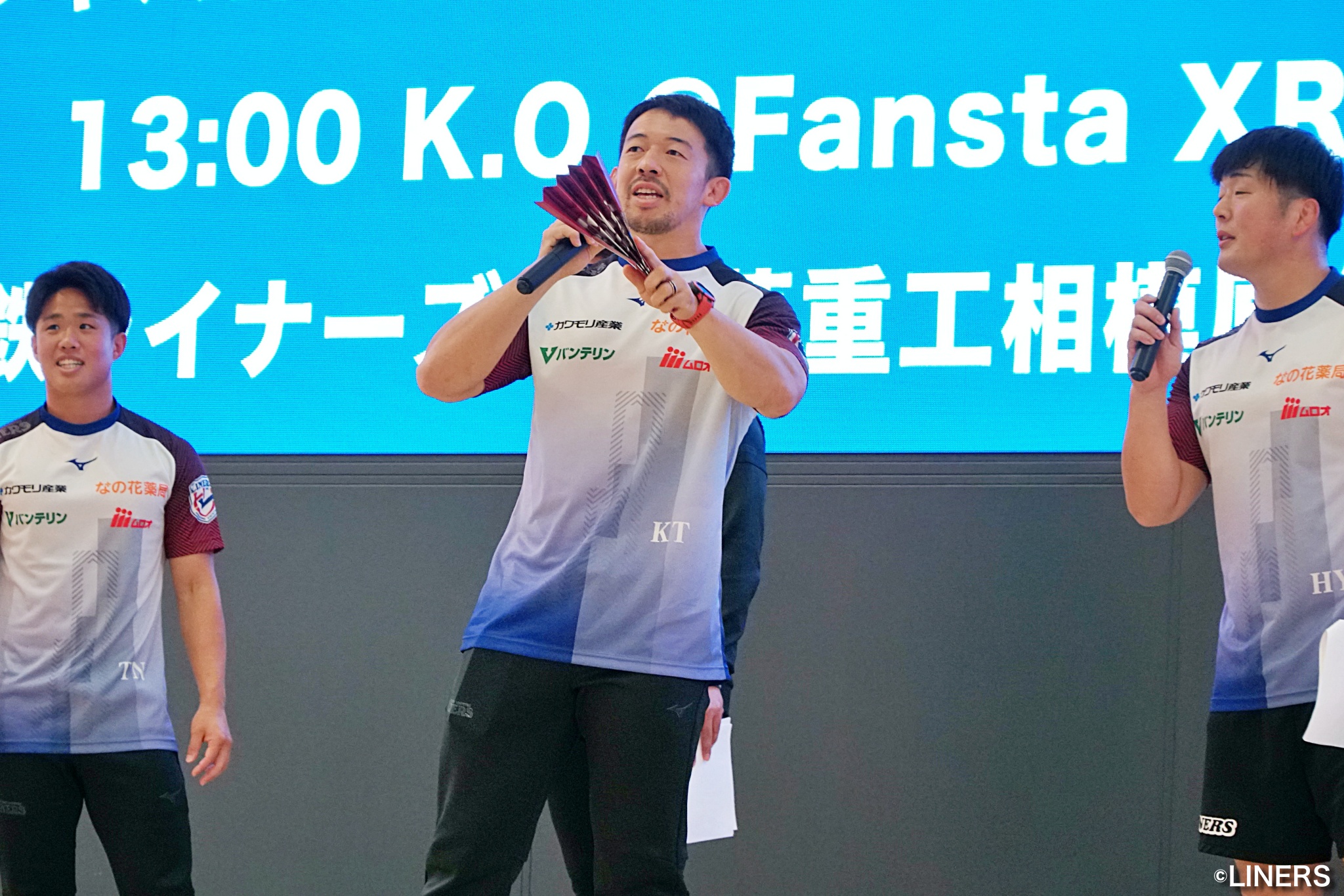 村田 毅、中村 友哉、横井 隼、松田 一真、梅村 柊羽、井上 優士、吉本 匠の7選手に加え、マスコットキャラクターのライナマン、MCとしてスタッフの森田尚希が参加。