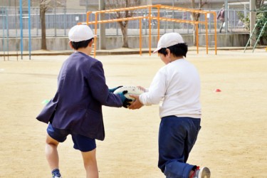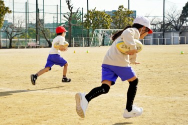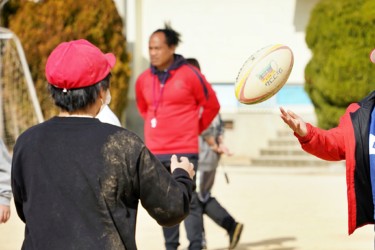 「One Team」をテーマに、楕円球の扱いの難しさに苦戦しながらもみんなで協力して取り組んでくれました。