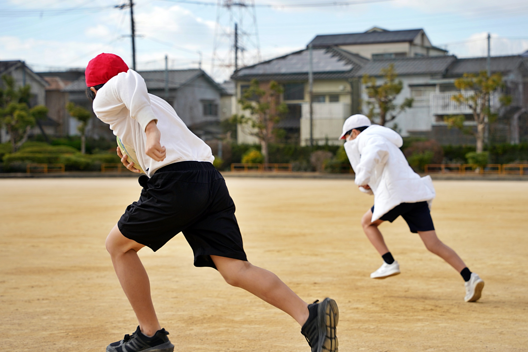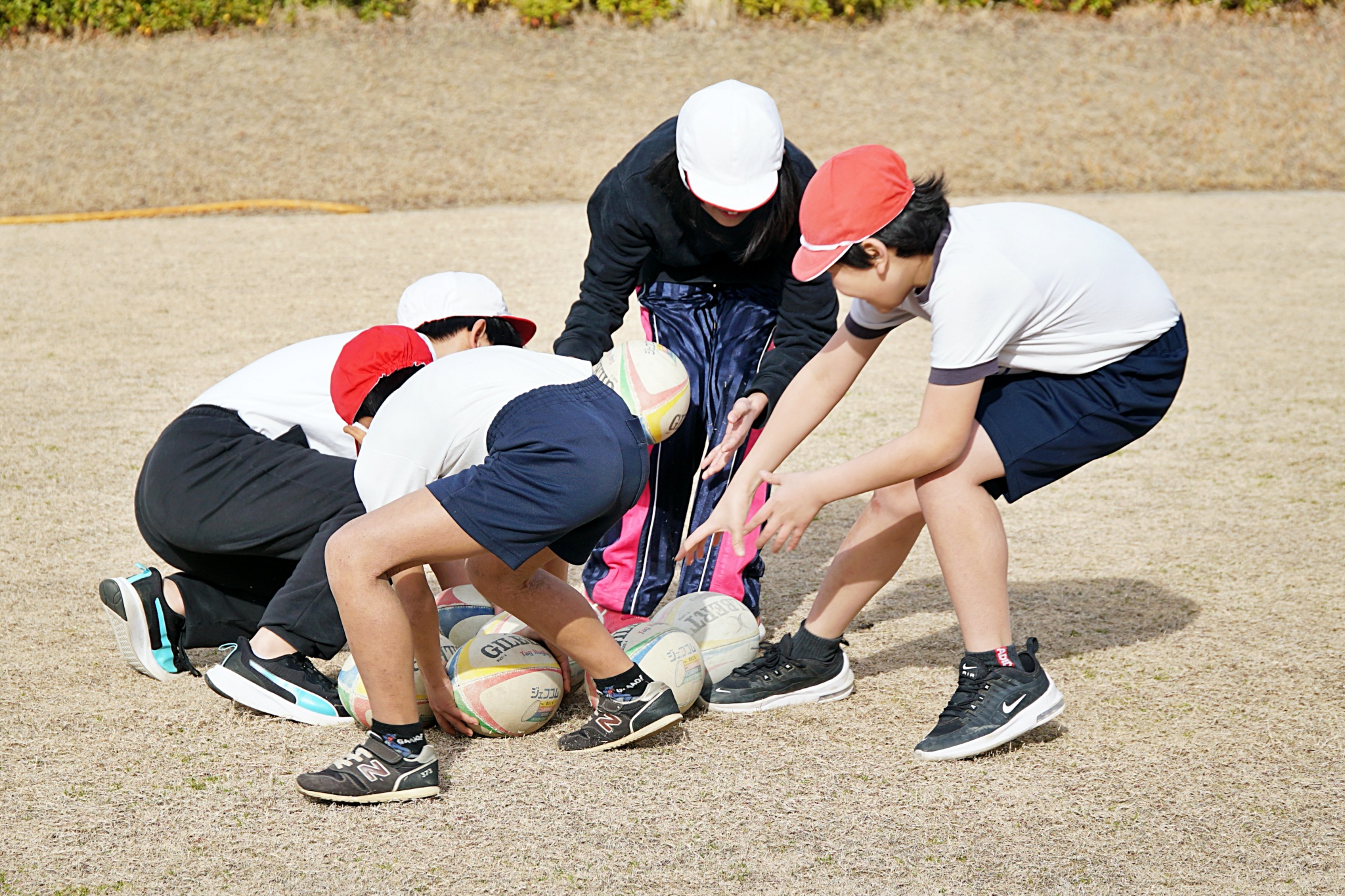 「One Team」をテーマに、楕円球の扱いの難しさに苦戦しながらもみんなで協力して取り組んでくれました。