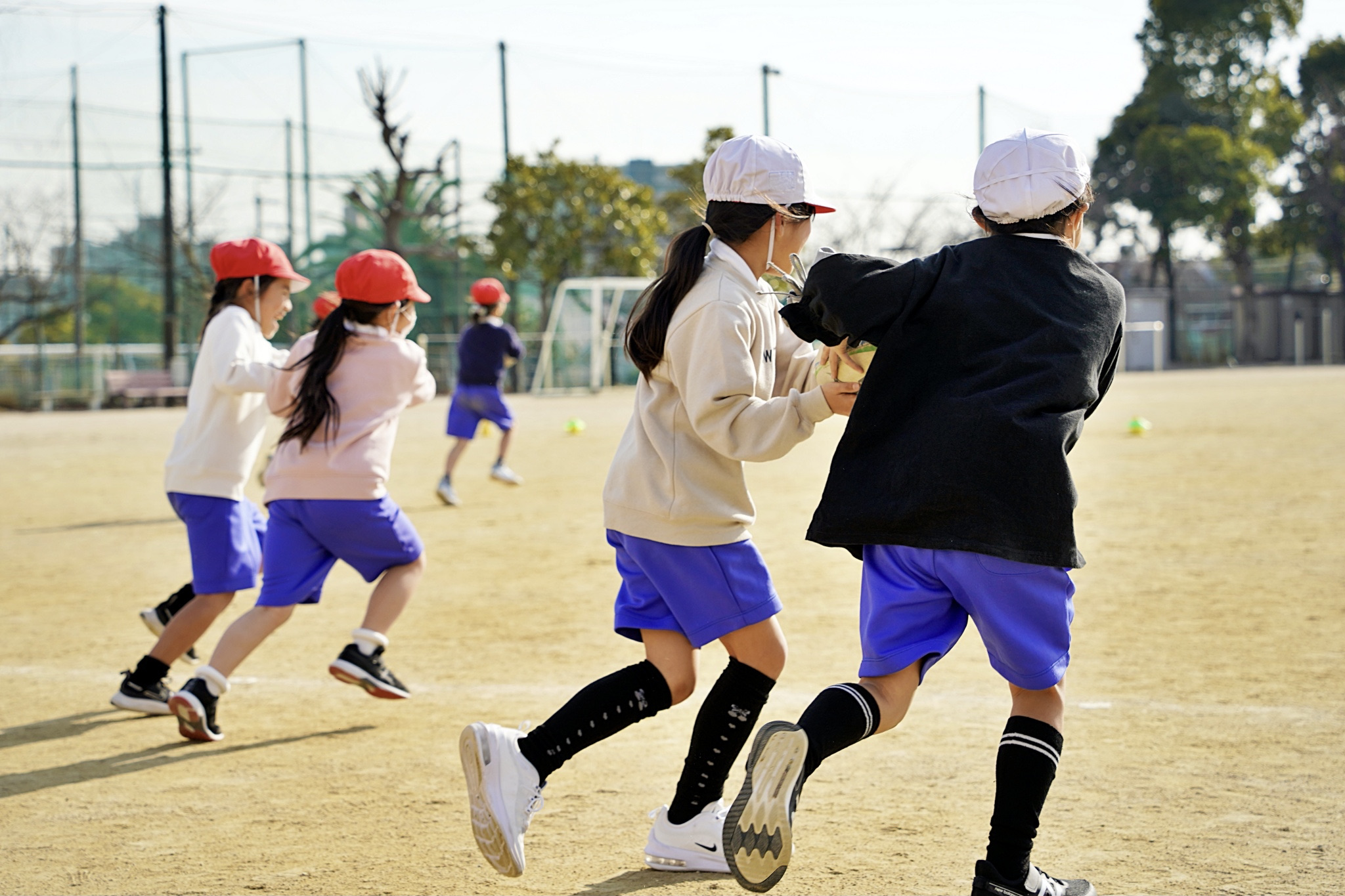 6年生にラグビー体験を実施。みんなで「One Team」の意味を考えることから始まり、タックル体験やパス体験、ラグビーボールを使ったリレーを行いました。ラグビースクールに通う児童もいて、みんなの前でタックルの披露も。2クラスに分かれての授業だったため、1クラス当たりの時間は限られていましたが、One Team で素早く行動してくれたお陰で、たくさんのゲームができました。