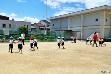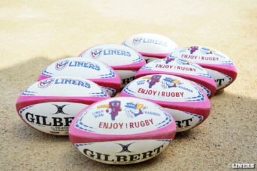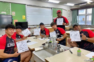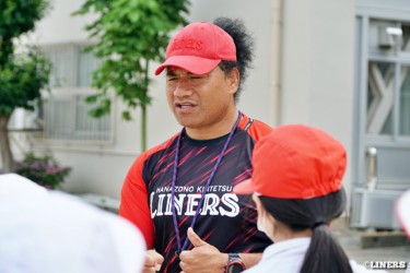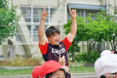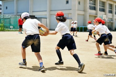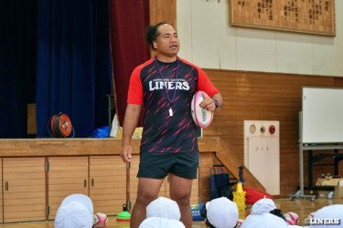 茨田南小学校の6年生にラグビー体験を行いました。この日から普及活動用のラグビーボールを新調。ライナーズのマスコットキャラクター「ライナマン」とSNS広報担当の「ラビナーくん」があしらわれたボールです。新品のボールで児童のみなさんもテンションMAX。いつも以上にラグビー体験が盛り上がりました。