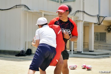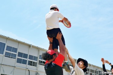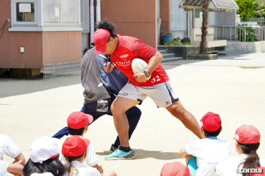 巽小学校の6年生にラグビー体験を行いました。学校の先生にラグビー経験者がいらっしゃったことから、この日はラインアウト体験も。普段なかなか体験できない高さに驚く児童のみなさんの表情が印象的でした。