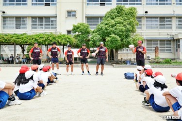 半年ぶりの訪問となる門真小学校で、5年生にラグビー体験。チームワークがとても良く、みんなが協力的に活動していたのが印象的でした。体験後にはサインを求める大行列ができ、全員にサインをプレゼントしました。