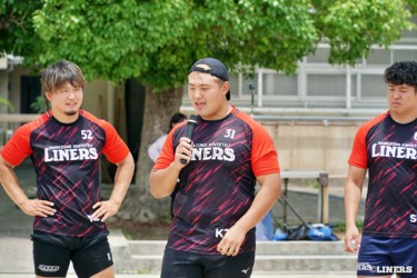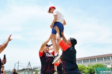 枚方ラグビーカーニバルにて、ラグビー体験とラグビークリニックを行いました。前半はラグビー体験。幼児から小学生まで、たくさんの方にご参加いただきました。後半は中学生を対象としたラグビークリニックを。中学校やスクールでラグビーをしている選手のみなさんに、ライナーズの選手が直接指導しました。