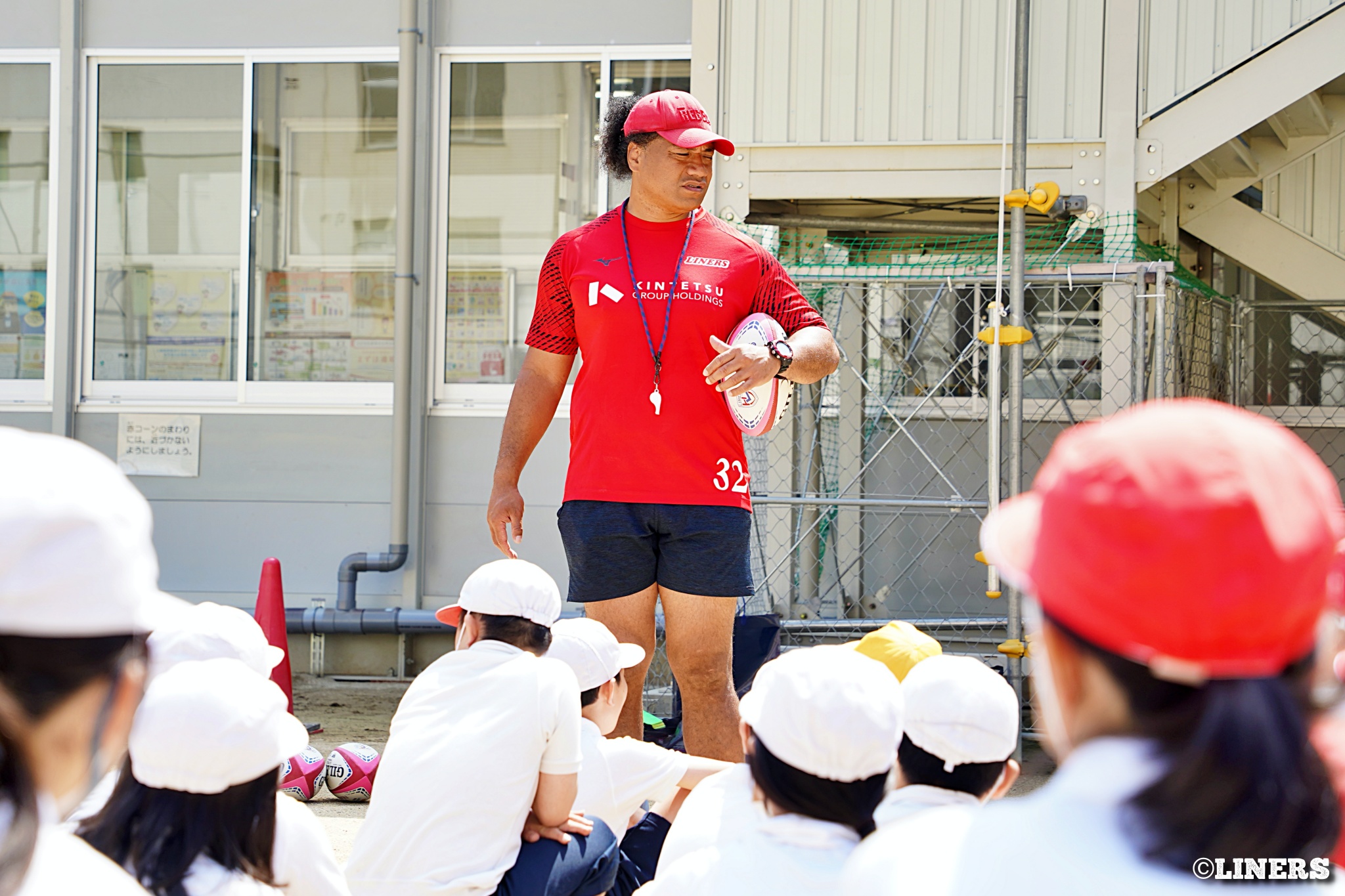 半年ぶりの訪問となる門真小学校で、5年生にラグビー体験。チームワークがとても良く、みんなが協力的に活動していたのが印象的でした。体験後にはサインを求める大行列ができ、全員にサインをプレゼントしました。