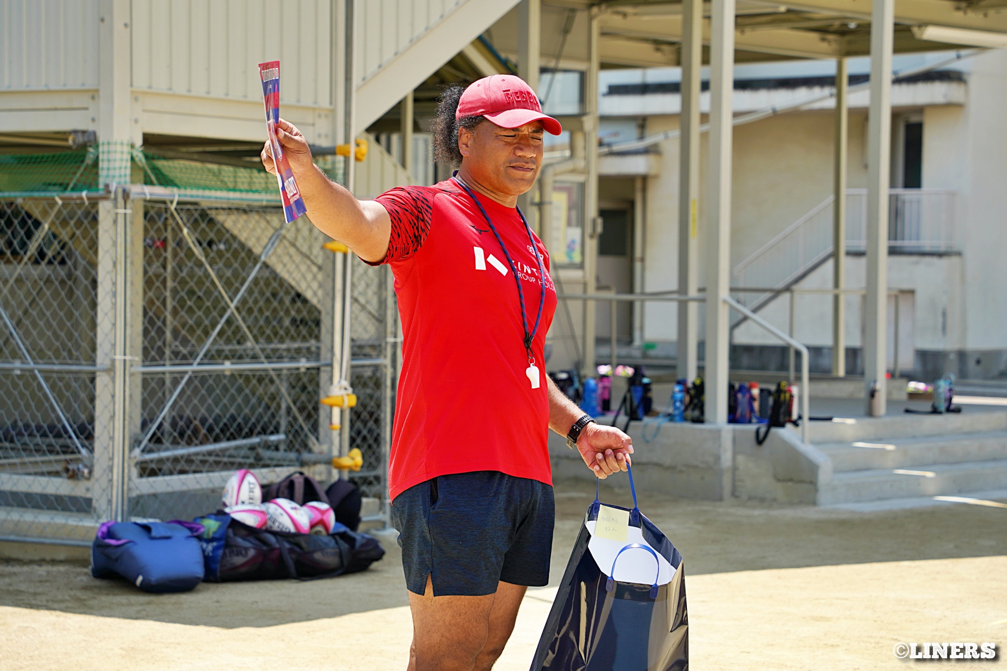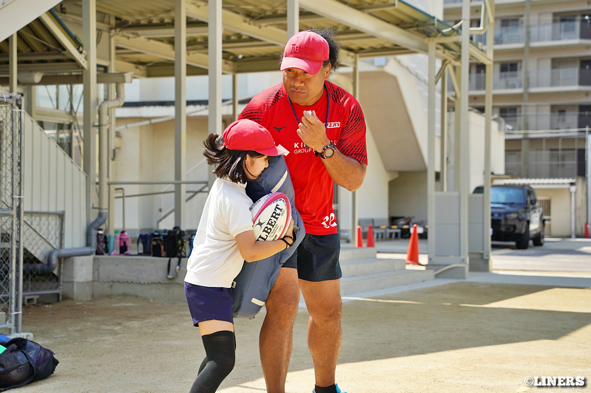 枚方ラグビーカーニバルにて、ラグビー体験とラグビークリニックを行いました。前半はラグビー体験。幼児から小学生まで、たくさんの方にご参加いただきました。後半は中学生を対象としたラグビークリニックを。中学校やスクールでラグビーをしている選手のみなさんに、ライナーズの選手が直接指導しました。