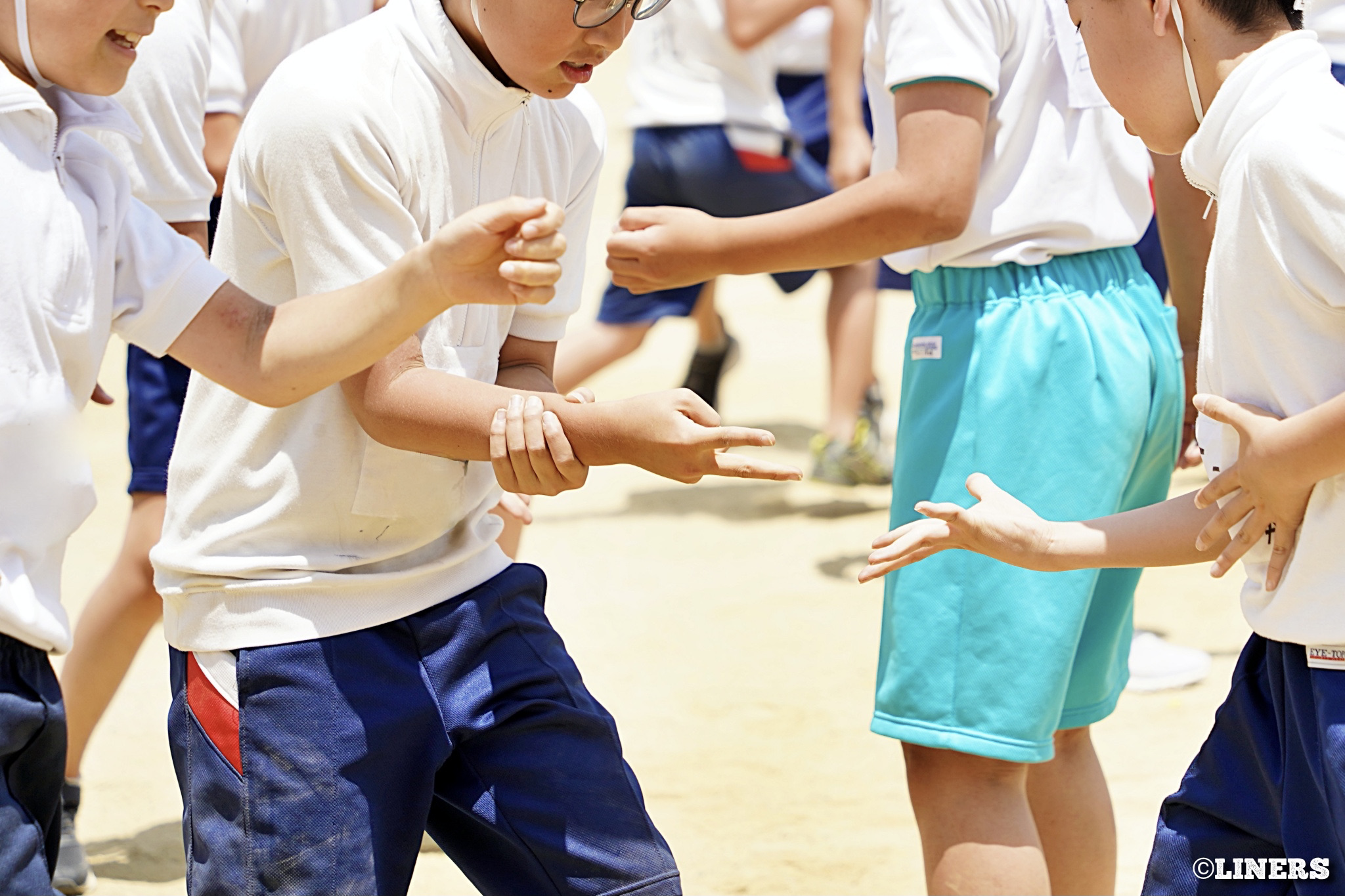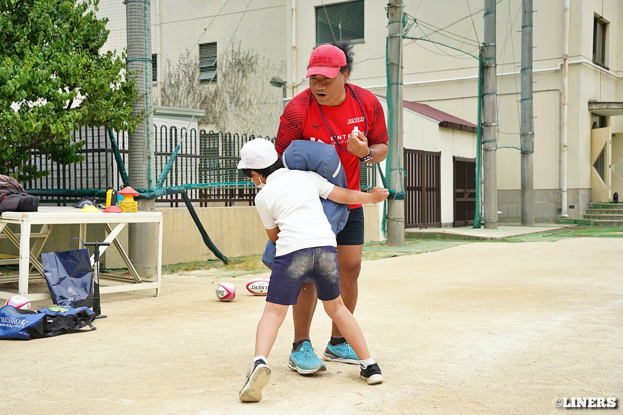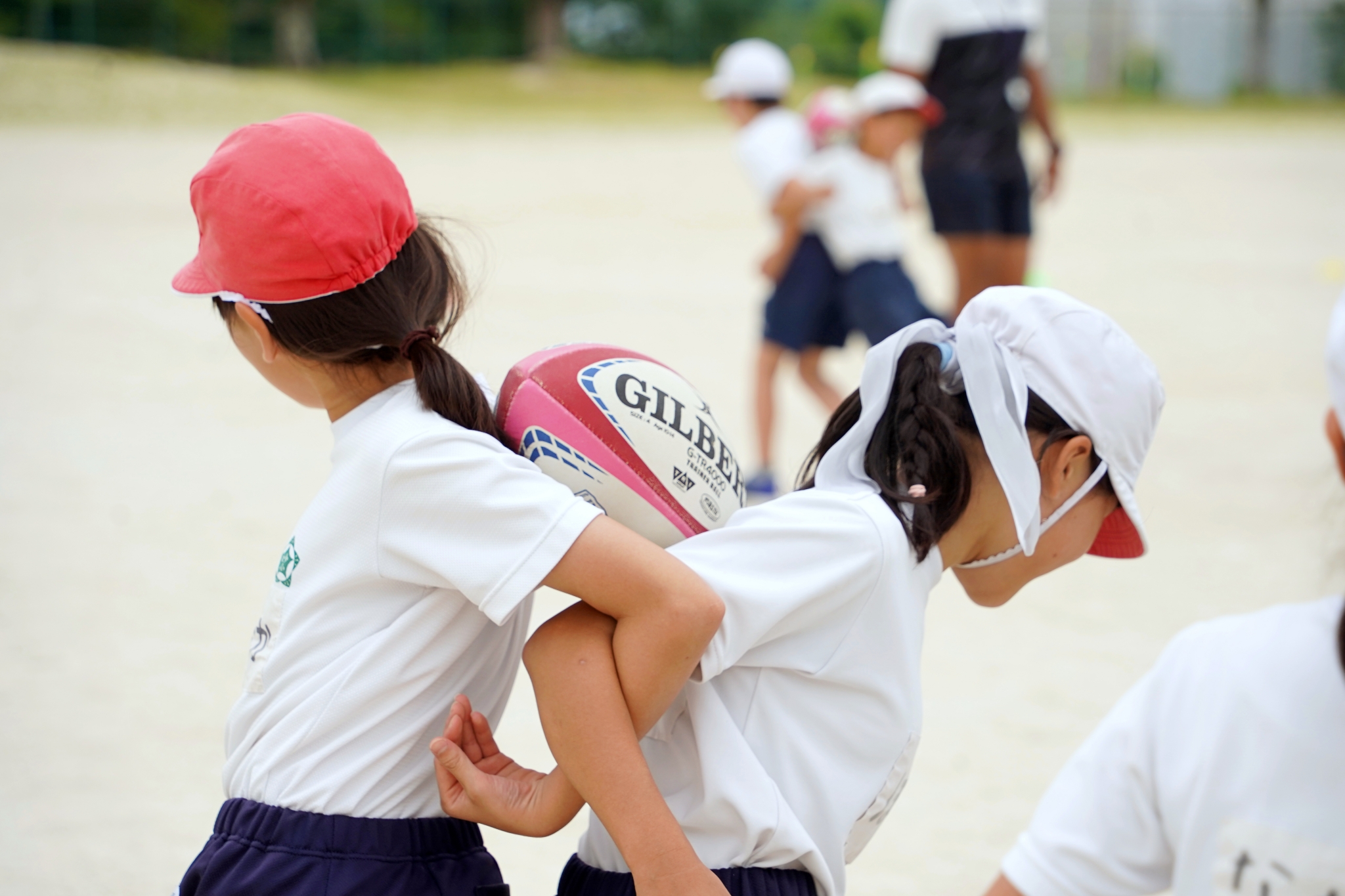 巽小学校の6年生にラグビー体験を行いました。学校の先生にラグビー経験者がいらっしゃったことから、この日はラインアウト体験も。普段なかなか体験できない高さに驚く児童のみなさんの表情が印象的でした。