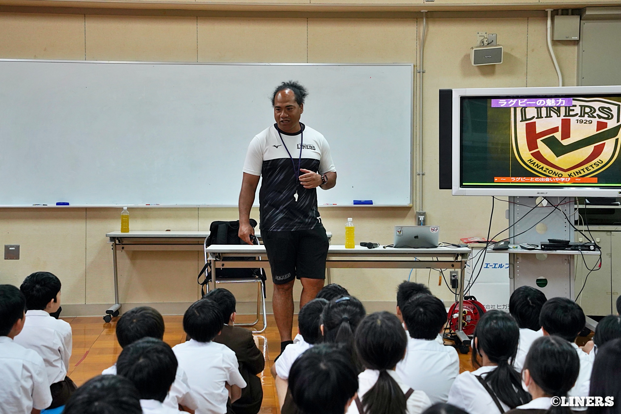 矢田小学校の5・6年生にラグビー体験。体験の前には円陣を組むなど、みんながとても仲の良い学校でした。最後の質問タイムでは、ラグビーのことだけでなくトンガのことなどたくさんの質問をいただきました。