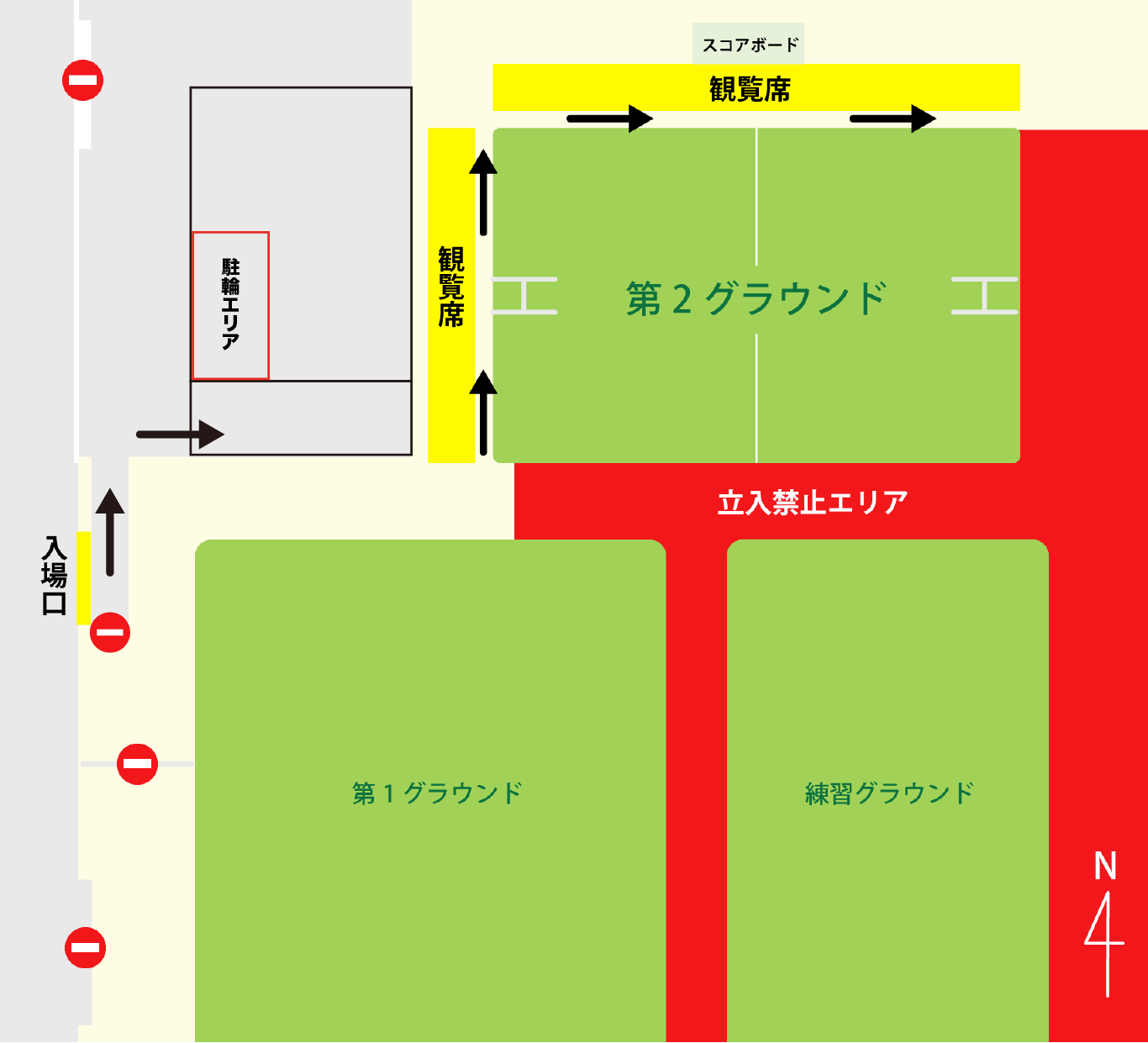 スタジアム西側よりご入場ください。グラウンドへの導線は以下の画像をご覧ください。