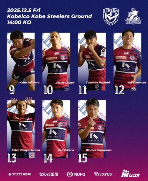 2025年12月5日(金)14:00 K.O. vsコベルコ神戸スティーラーズ