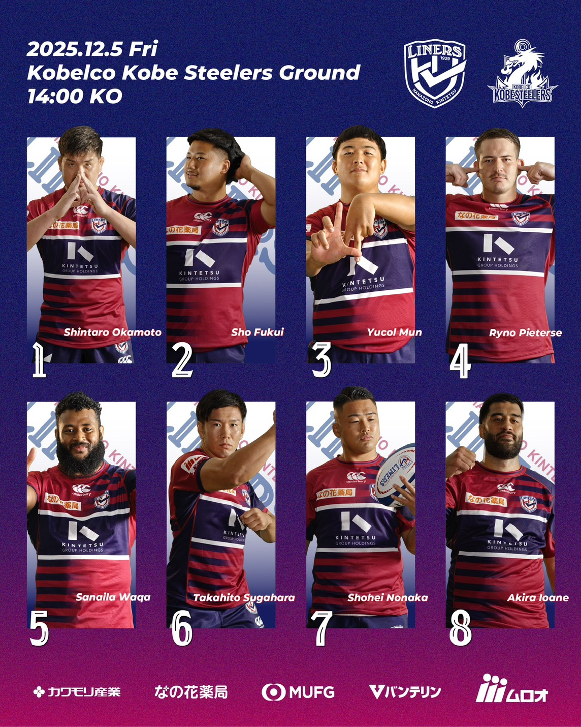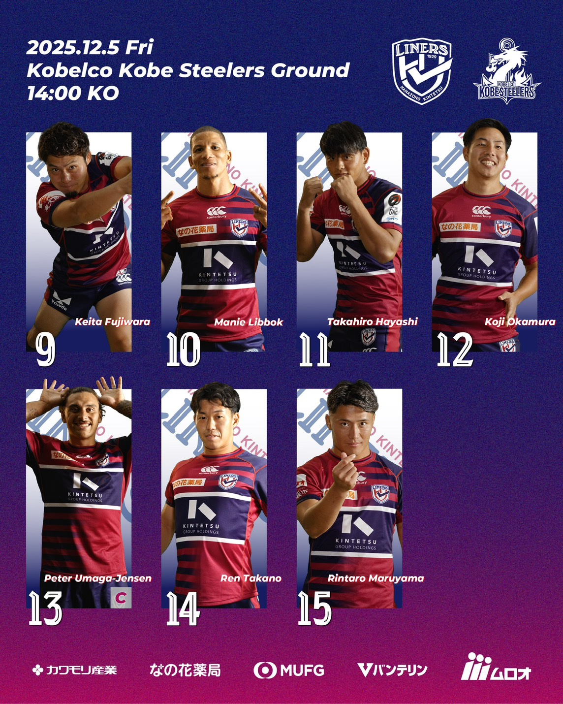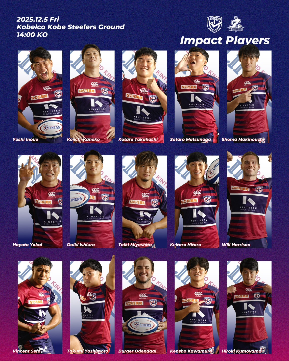 2025年12月5日(金)14:00 K.O. vsコベルコ神戸スティーラーズ